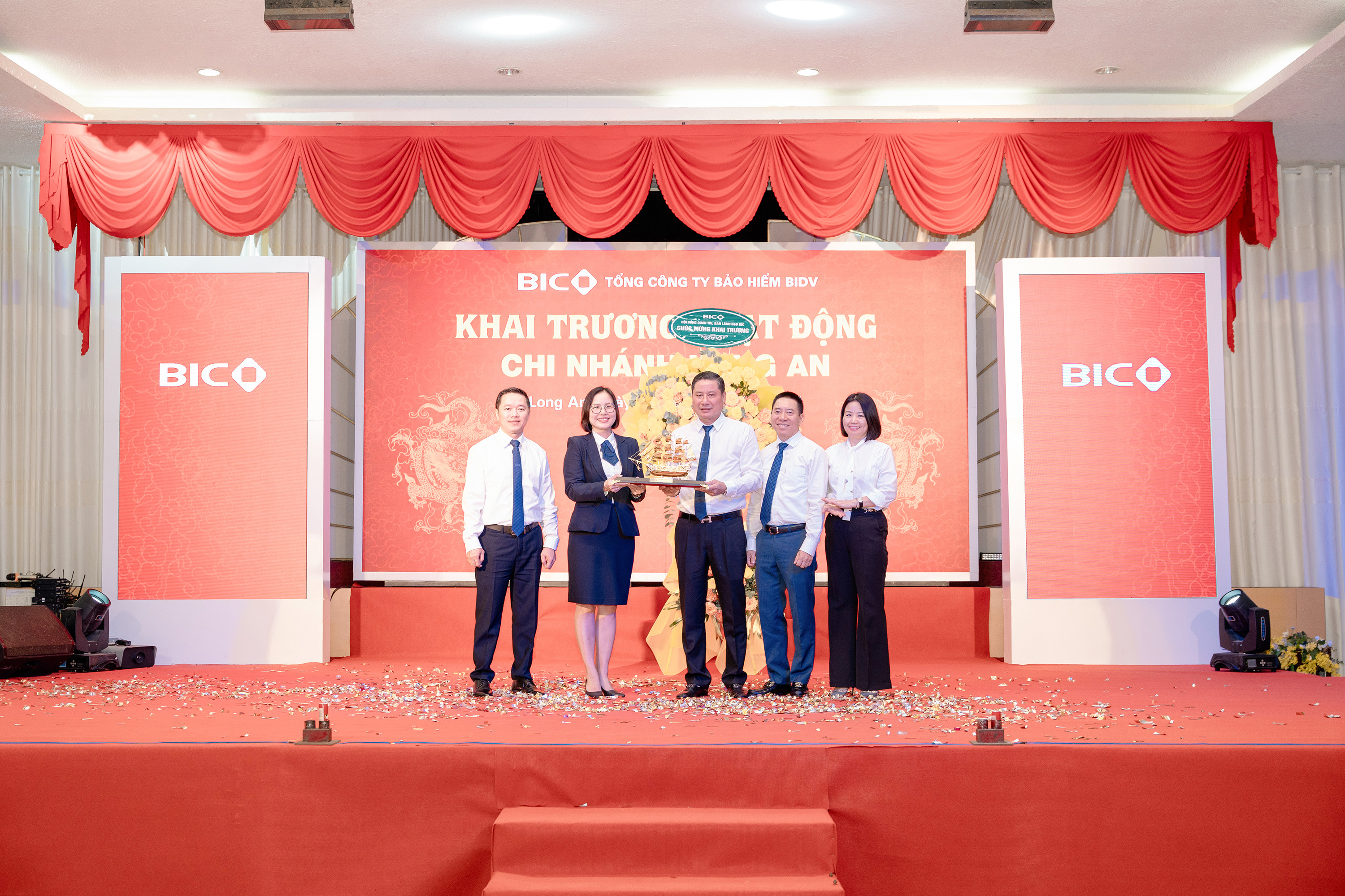 Ban lãnh đạo BIC tặng quà khai trương cho Ban lãnh đạo BIC Long An |