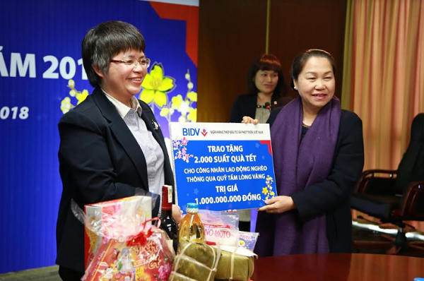 Chương trình tặng quà tết cho đồng bào nghèo đã trở thành hoạt động an sinh xã hội thường niên liên tục của BIDV từ năm 2009 đến nay. Với mong muốn góp phần đem đến cho đồng bào nghèo một cái Tết no ấm, tết Mậu Tuất 2018, công đoàn BIDV đã phát động phong trào quyên góp 24.000 suất quà Tết trị giá 12 tỷ đồng tặng đồng bào nghèo, công nhân lao động nghèo tại 63 tỉnh, thành phố trên khắp cả nước. Trị giá trung bình mỗi suất quà tết là 500.000 đồng/suất, theo thời giá hiện tại, một suất quà bao gồm: 1 kg thịt, 2 chiếc bánh chưng, 1 hộp mứt, 1 chai rượu, 1 gói mỳ chính….