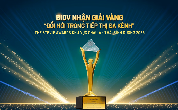 Những nỗ lực này đã được ghi nhận khi BIDV vượt qua hơn 1.000 đề cử, trở thành ngân hàng duy nhất tại Việt Nam giành Giải Vàng hạng mục “Đổi mới trong tiếp thị đa kênh” - (Innovation in Cross-Media Marketing) do Stevie Awards, một trong những hệ thống giải thưởng kinh doanh quốc tế uy tín trao tặng.