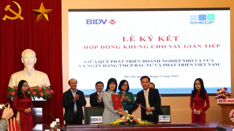 (PLVN) - Ngày 06/12/2019, tại Hà Nội, Ngân hàng TMCP Đầu tư và Phát triển Việt Nam (BIDV) và Quỹ Phát triển Doanh nghiệp nhỏ và vừa (PTDNNVV) đã thực hiện Lễ ký kết hợp đồng khung về cho vay gián tiếp, qua đó tạo điều kiện thuận lợi cho doanh nghiệp tại Việt Nam tiếp cận nguồn vốn với chi phí thấp hàng đầu thị trường. BIDV là ngân hàng đầu tiên được Quỹ PTDNNVV lựa chọn triển khai chương trình này.