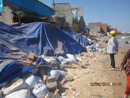 “Mấy năm nay biển lấn vào khu di dân làm ngã đổ biết bao nhiêu nhà, nguy hiểm đến tính mạng biết bao nhiêu người nhưng chính quyền vẫn chưa có động thái gì trước mối nguy hại này”, ông Phú nói.