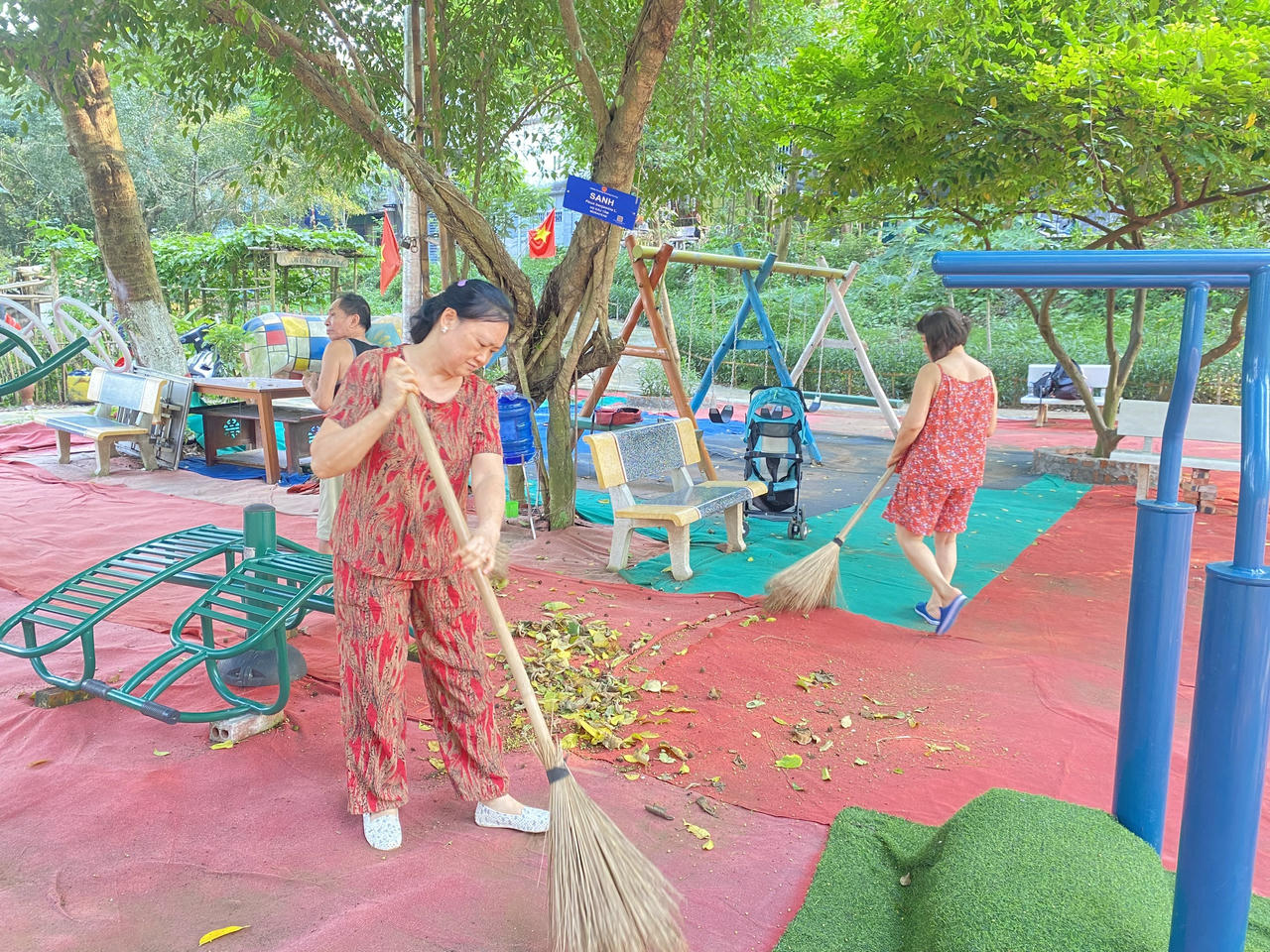 Nhằm giữ gìn cảnh quan cho công viên, người dân tích cực dọn dẹp vệ sinh để mọi người có thể vui chơi và thư giãn trong không gian sạch sẽ và thoáng mát. |