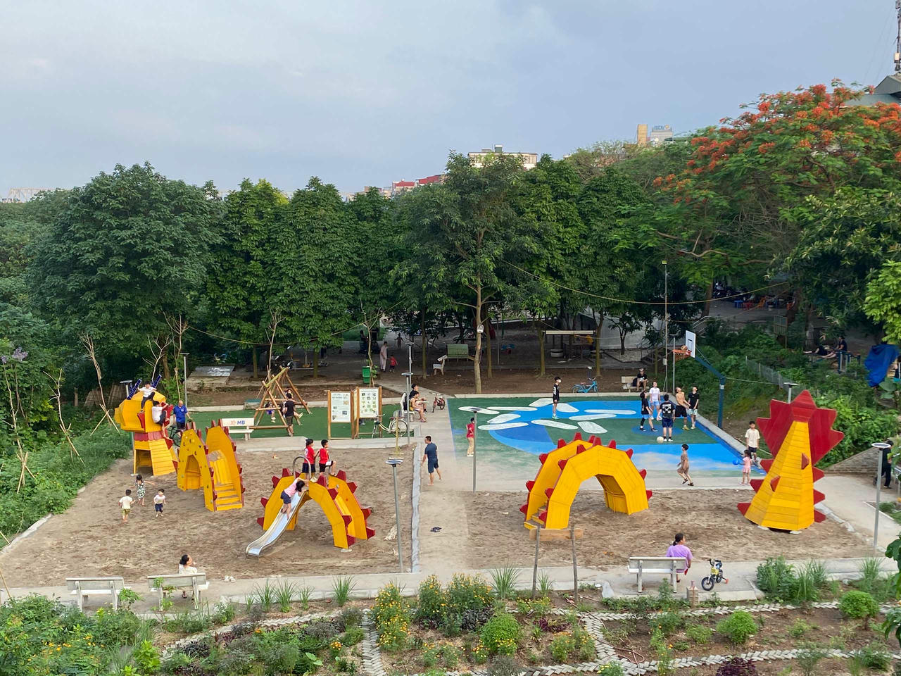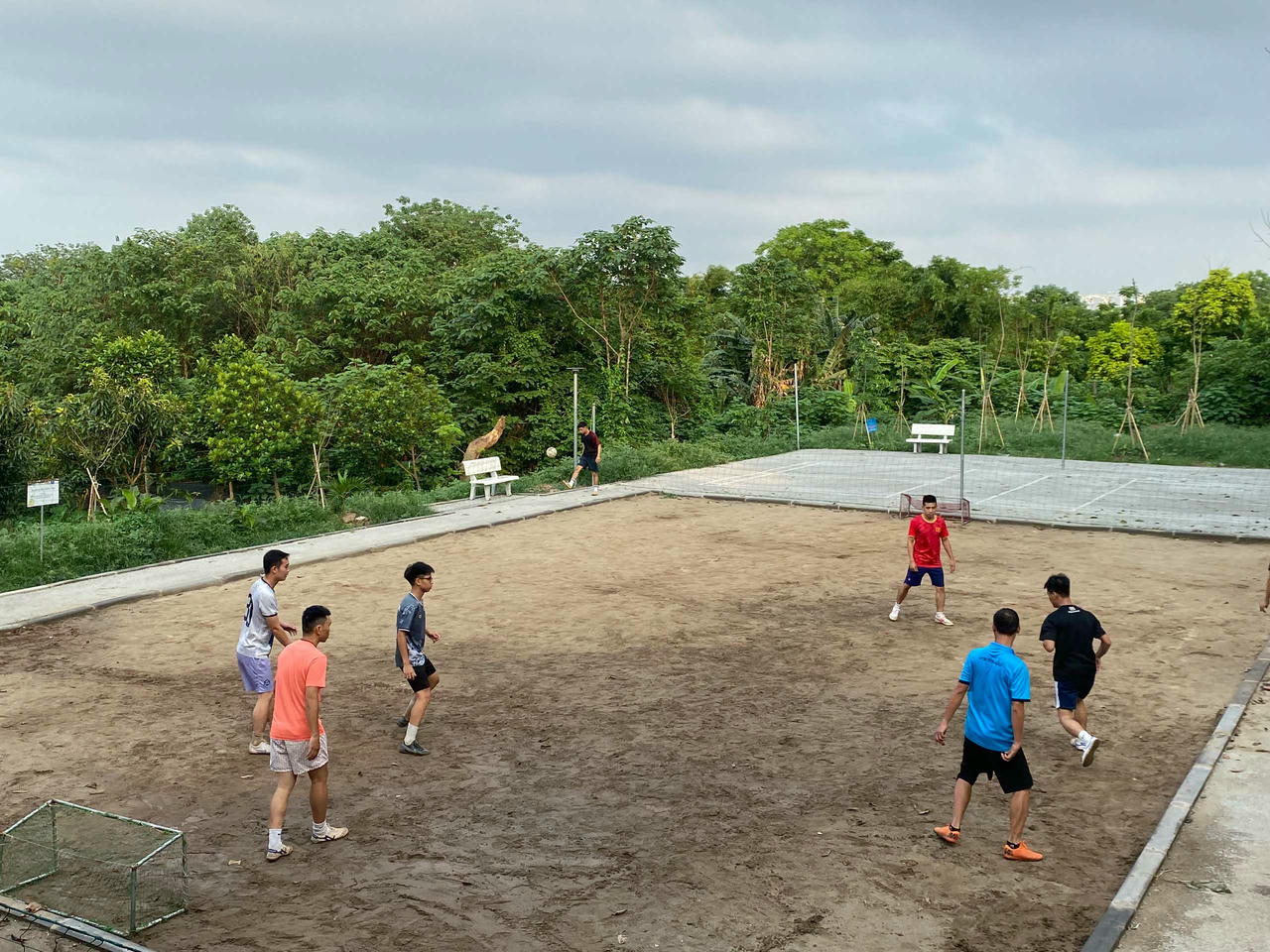 Công viên còn có bãi sân cát trống để thanh niên chơi thể thao. |