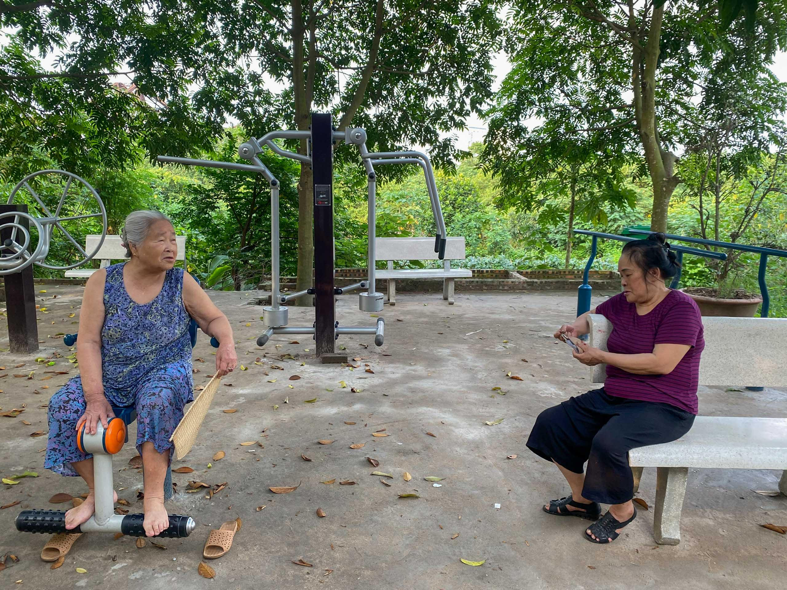 "Từ khi có công viên, nhiều người ở tuổi tôi hằng ngày được vận động mà khỏe lên", ông Bắc (người trong ảnh - phường Phúc Tân) chia sẻ. |