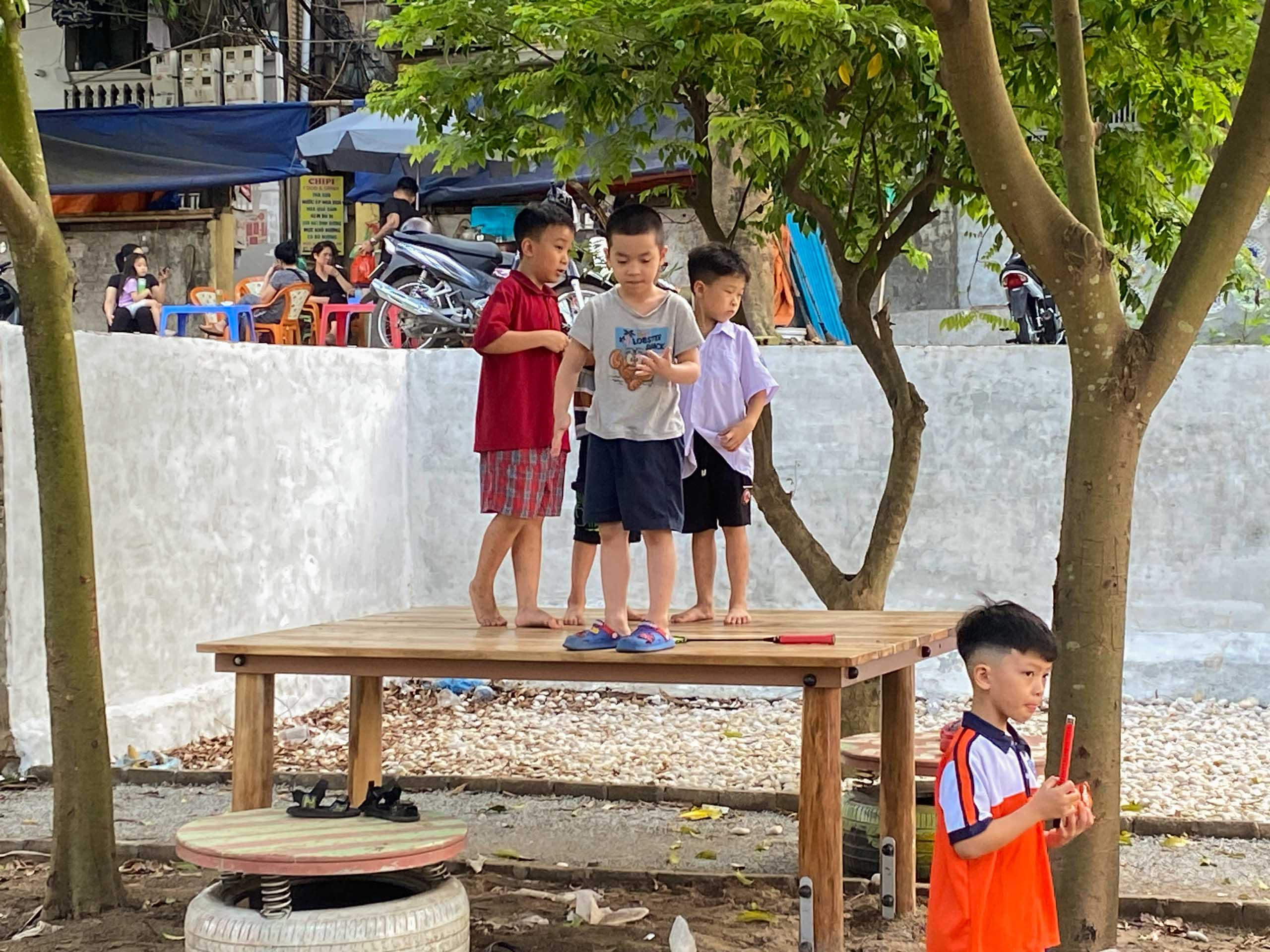 Trong không gian rộng rãi và gần gũi với thiên nhiên, các em nhỏ có cơ hội vận động thể chất, nâng cao sức khoẻ và tham gia các hoạt động tập thể. |