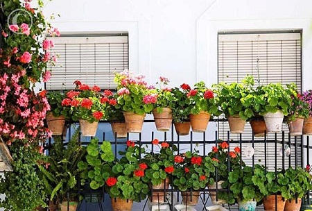 - Trương hợp ban công không vuông vức do đất bị chéo bạn cũng đừng ngại vẫn hóa giải được như thường. Hãy lát nền bằng gạch rối Vintage (có nhiều mầu sắc) đặt bồn hoa nơi góc nhỏ và chọn bộ ghế nhỏ tinh tế làm cho người ta quên đi những nhược điểm của ban công.