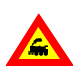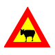 Báotrướctới đoạn đường thường có gia súc thả rông hoặc lùa qua ngang đường nguy hiểm, biển này thường đặt ở vùng đồng cỏ của nông trường chăn nuôi, vùng thảo nguyên. Người lái xe có trách nhiệm dừng lại bảo đảm cho gia súc có thể qua đường không bị nguy hiểm.