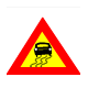 Báotrước sắp tới đoạn đường có thể xảy ra trơn trượt khi thời tiết xấu, cần tránh hãm phanh, tăng ga, sang số đột ngột hoặc xe chạy với tốc độ cao sẽ gặp nguy hiểm. Khi gặp biển báo này người điềukhiển phương tiện phải giảm tốc độ xe chạy và thận trọng.