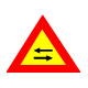 Biển báo 204: Đường 2 chiều.Báo đoạn đường phía trước do sửa chữa hoặc có trở ngại khác nên phải đi vào phần đường còn lại hoặc đường tạm theo cả 2 chiều. |