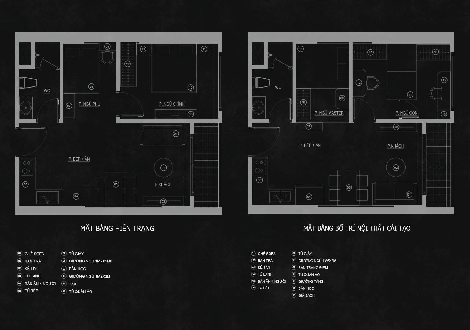 Khi nhận mặt bằng, phương án anh Nam cùng cộng sự đưa ra là điều chỉnh lại cửa phòng ngủ to hiện trạng và cải tạo phòng đó thành 2 phòng ngủ nhỏ cho các bé. Việc dịch chuyển cửa này đồng thời phải điều chỉnh lại vị trí của sofa và kệ tivi theo phương án chuyển đổi đối xứng.