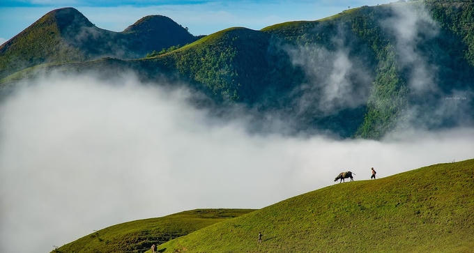 Khoảnh khắc mặt trời lên từ đằng xa trên nền núi non trùng điệp và mây trắng giăng khắp nơi sẽ làm nhiều người phải trầm trồ.