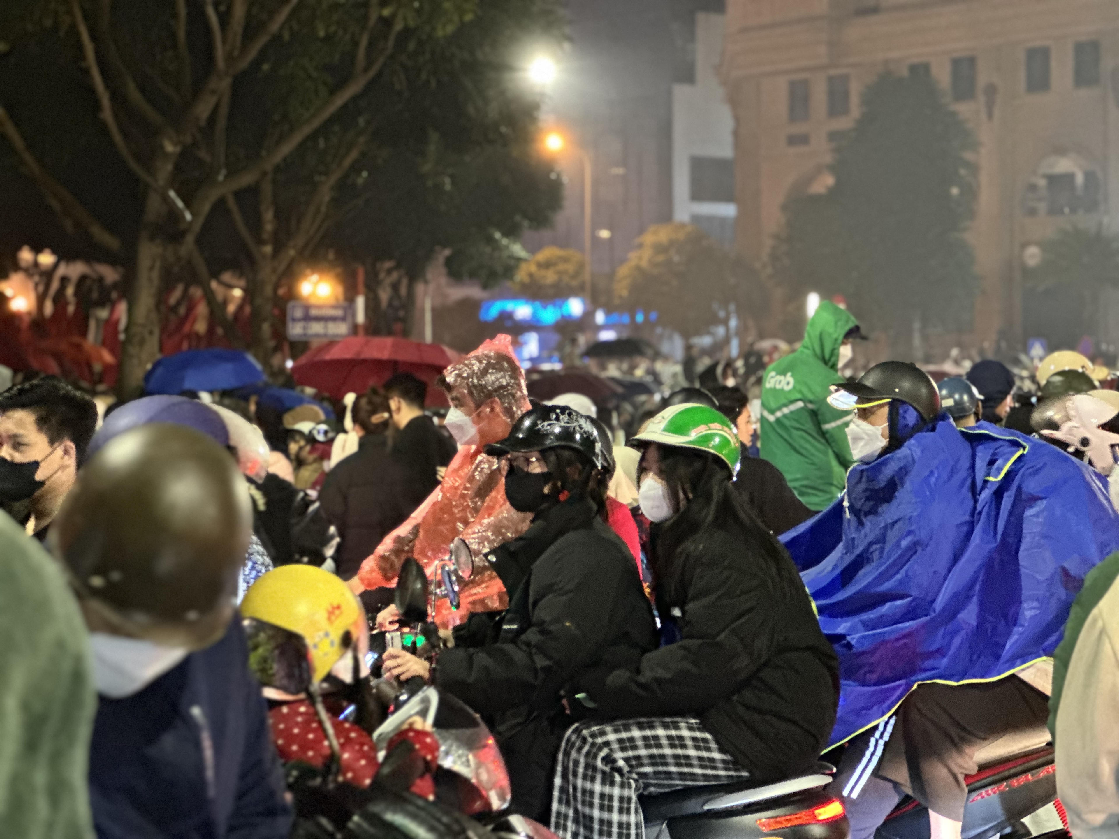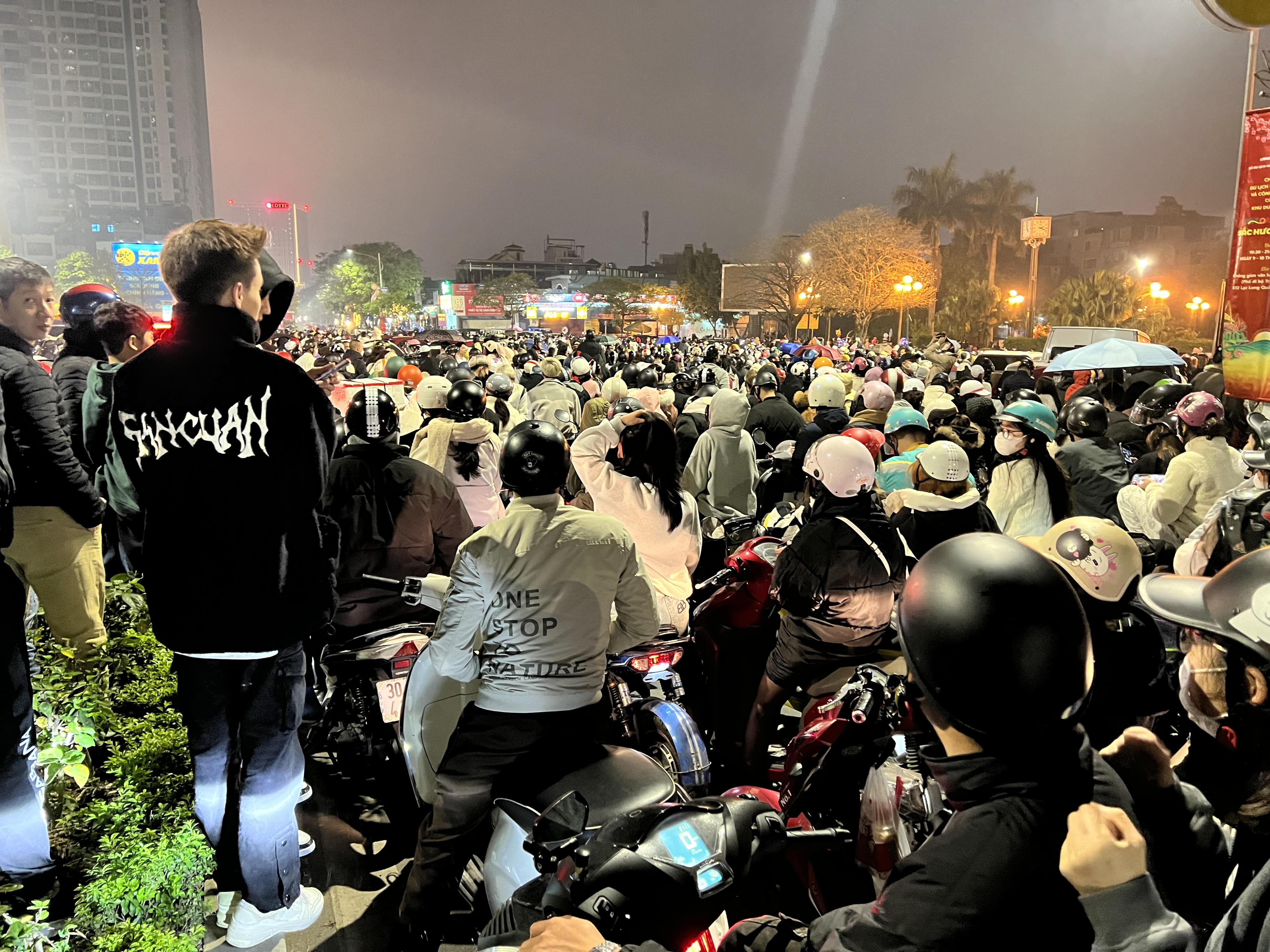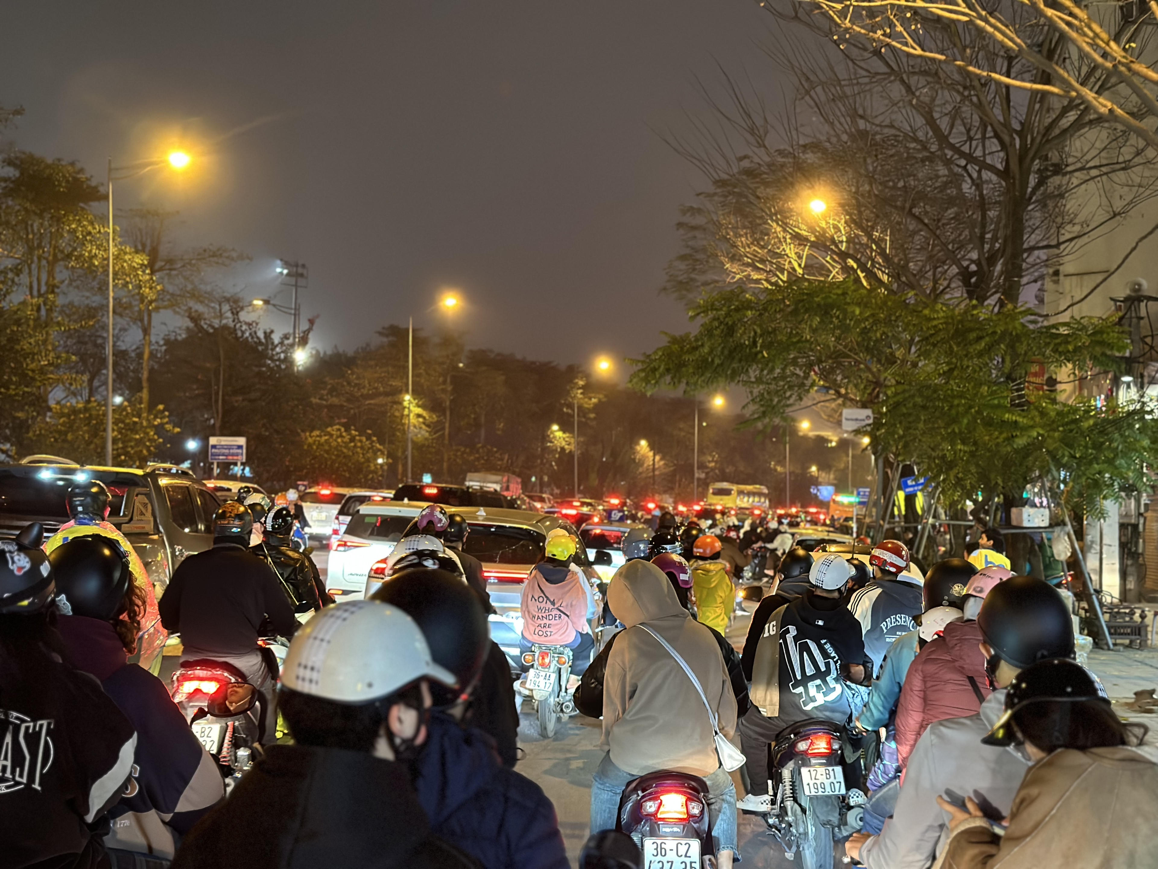 Nhiều người ngán ngẩm vì 'tiến không được lùi cũng không xong". Anh Nguyễn Duy Khánh (Xuân Phương, Nam Từ Liêm) chia sẻ: "Tôi đi gần 10km đến đây với mong muốn được xem màn biểu diễn ánh sáng. Nhưng gần đến khu vực có thể xem thì không thể di chuyển, tất cả mọi phương tiện đứng yên 1 chỗ đá 20 phút. Dù muốn quay về nhưng cũng không thể di chuyển".