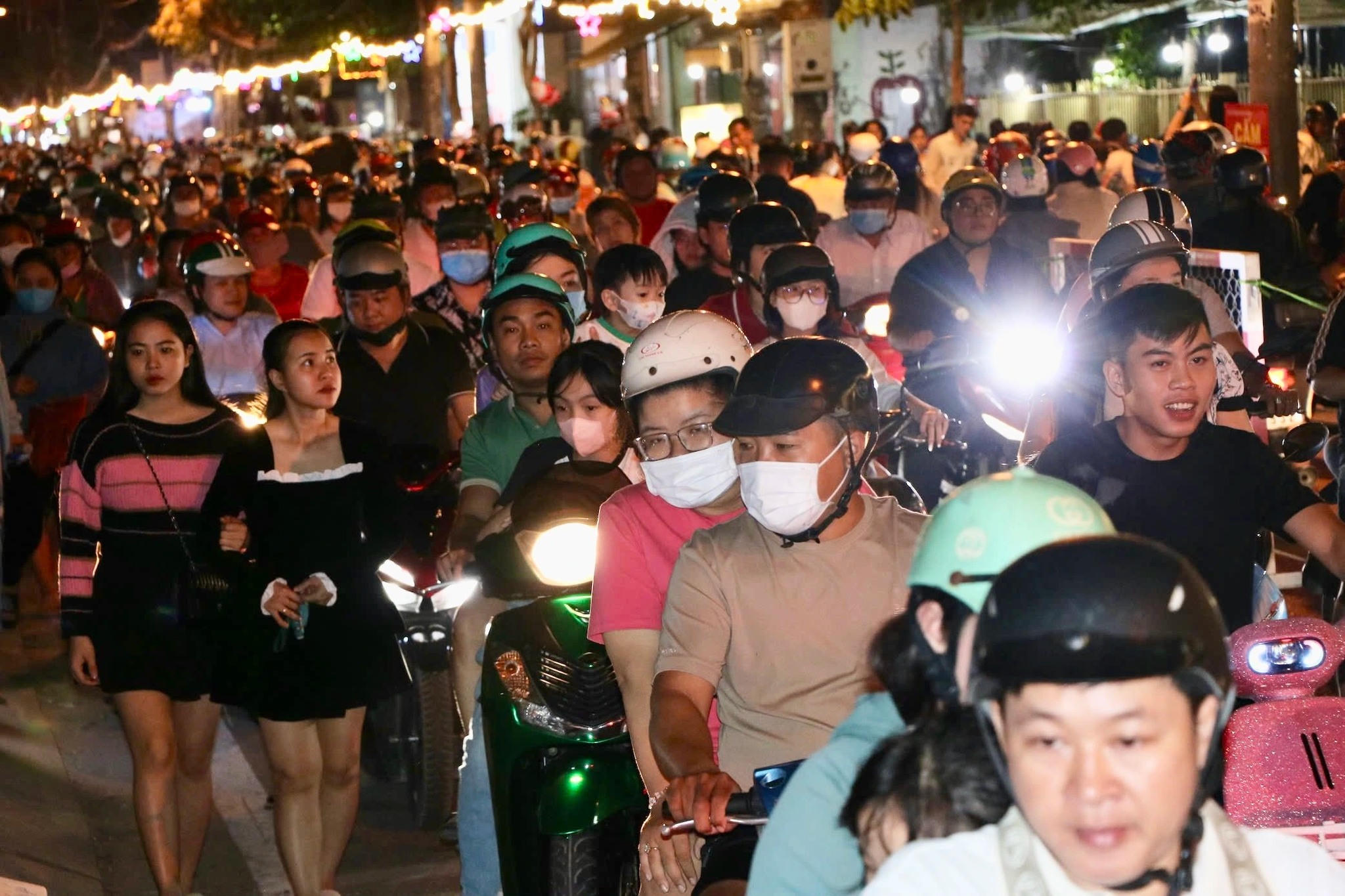 Xóm đạo Phạm Thế Hiển, xóm đạo lớn nhất TP HCM chật kín người và xe đi chơi Giáng sinh (Ảnh: Thanh niên) |