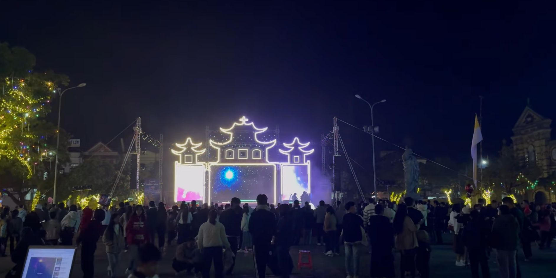 Không khí chuẩn bị cho đêm Giáng sinh tại Nhà thờ Đá Phát Diệm (huyện Kim Sơn, Ninh Bình). |