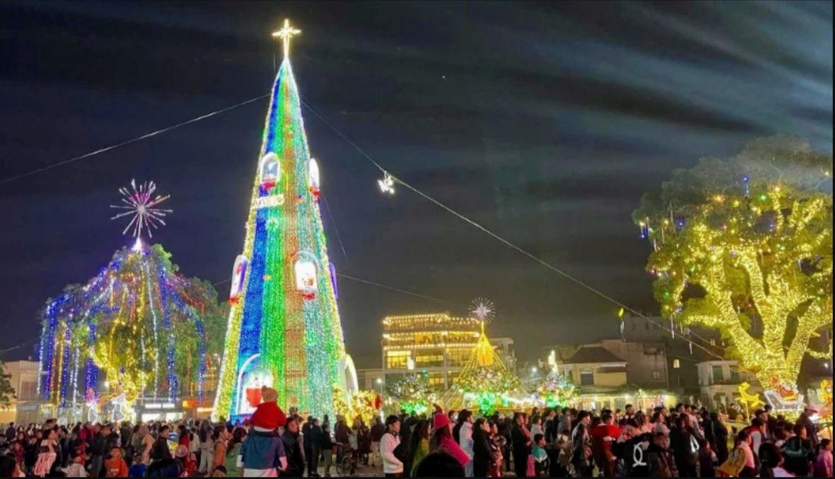 Tại Nghệ An, người dân cũng đổ ra đường, tìm đến các nhà thờ để tận hưởng không khí Giáng sinh (Ảnh: Nghệ An Review) |