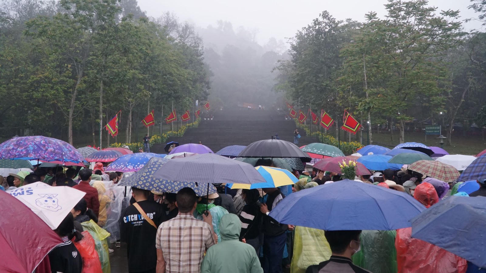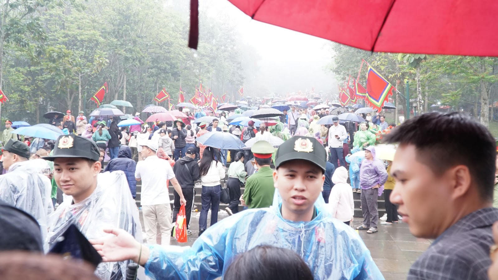 Biển người đổ về Đền Hùng dâng hương dưới trời mưa