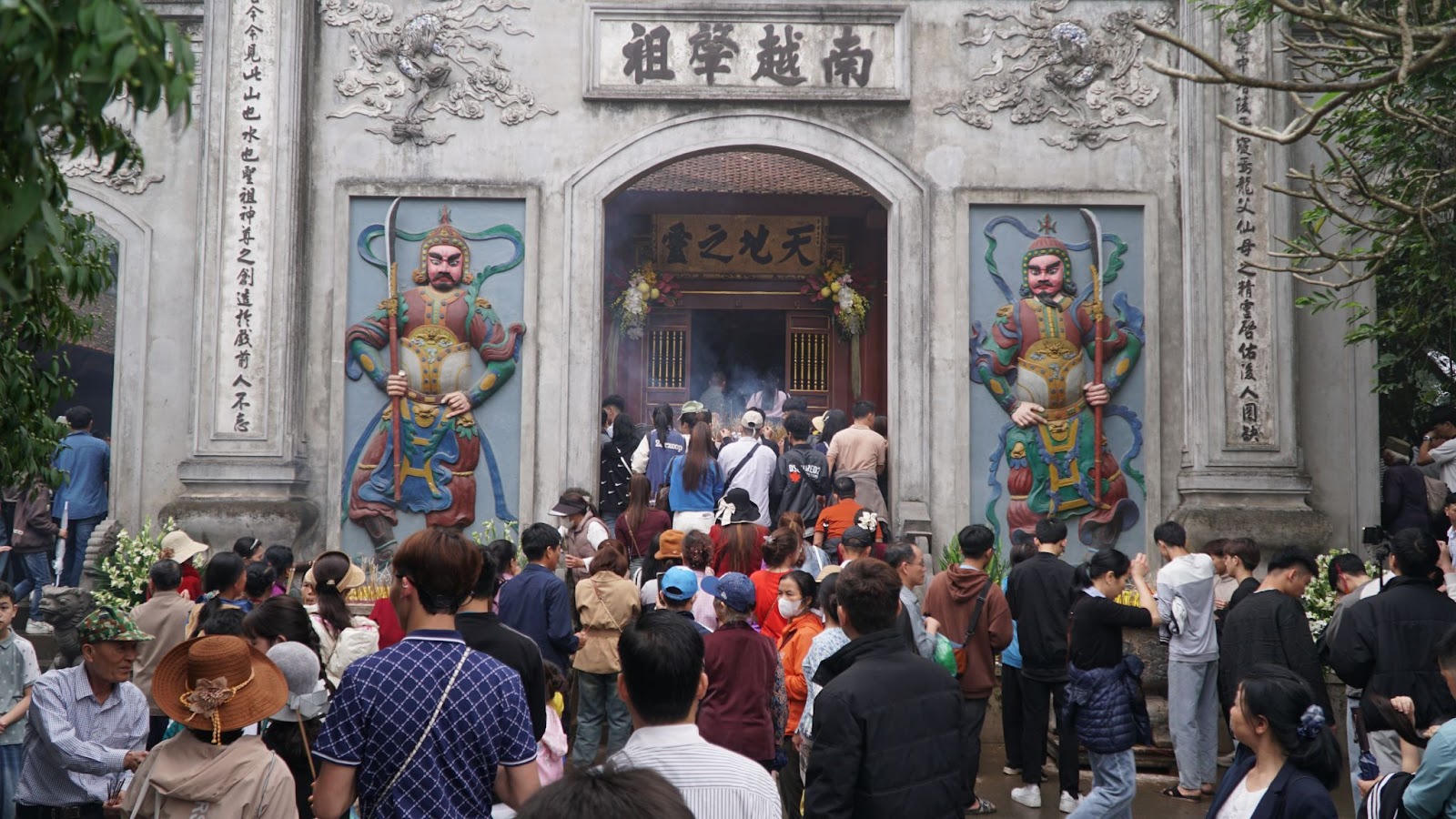 Các bạn trẻ háo hức checkin tại trước cổng đền Hùng. Mặc dù phải dậy từ sớm và đi quãng đường xa nhưng họ vẫn giữ được nụ cười rạng rỡ, niềm vui hân hoan trong ngày lễ trọng đại. (Ảnh: Lê Đình Tùng)