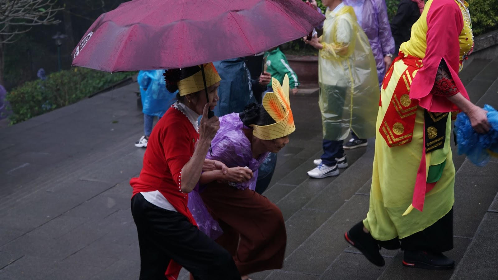 Đa dạng sắc màu văn hóa giữa cơn mưa Đền Hùng. (Ảnh: Lê Đình Tùng)