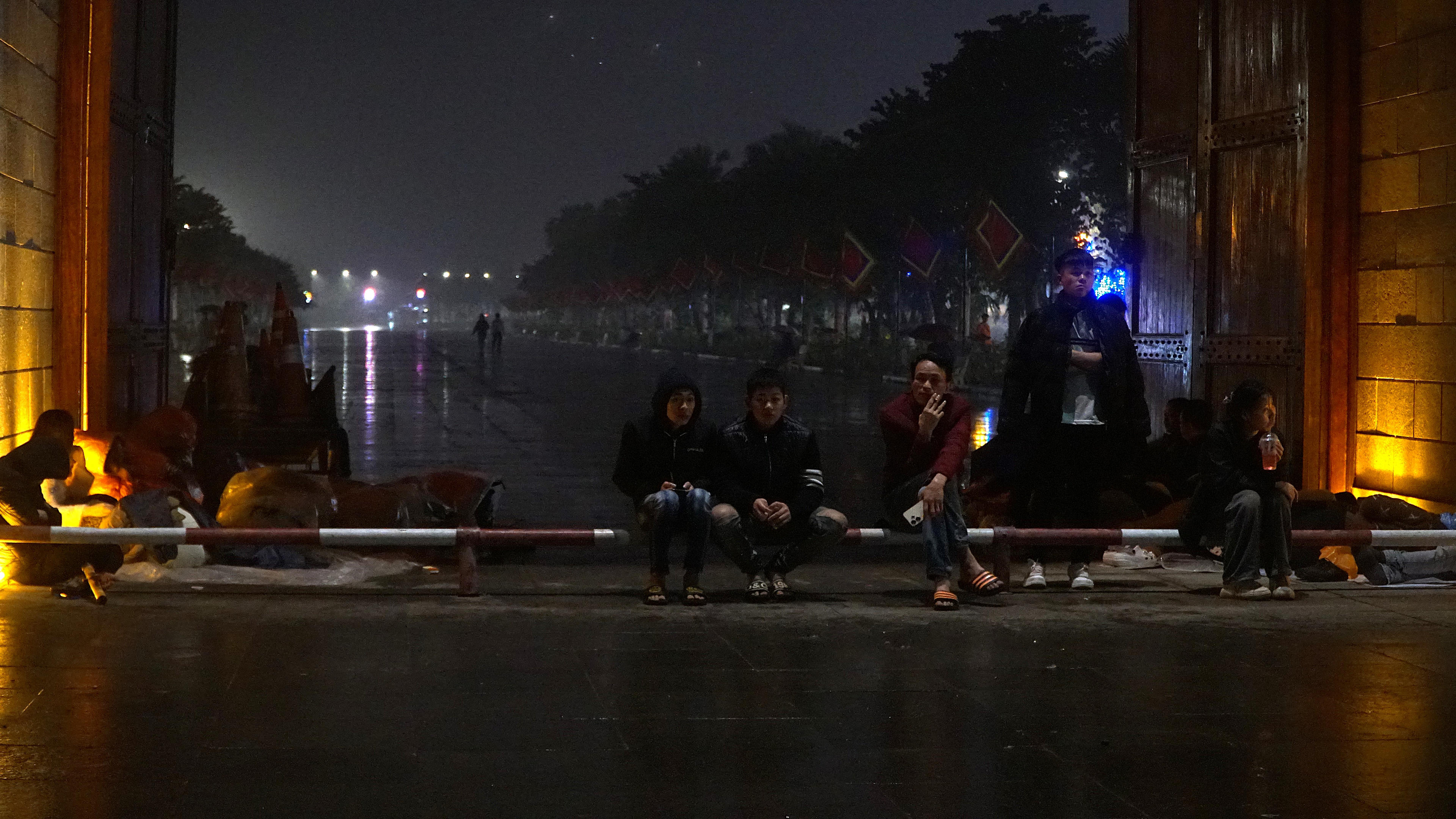 Nhiều người dân tranh thủ ngả lưng ngay ngoài trời, trải nilon làm chiếu để giữ chỗ sớm lên đền lễ Tổ. Hành trình về cội nguồn không chỉ là nghi lễ, mà còn là một niềm tin sâu thẳm, được gìn giữ bằng cả sự kiên nhẫn và lòng thành. (Ảnh: Lê Đình Tùng)