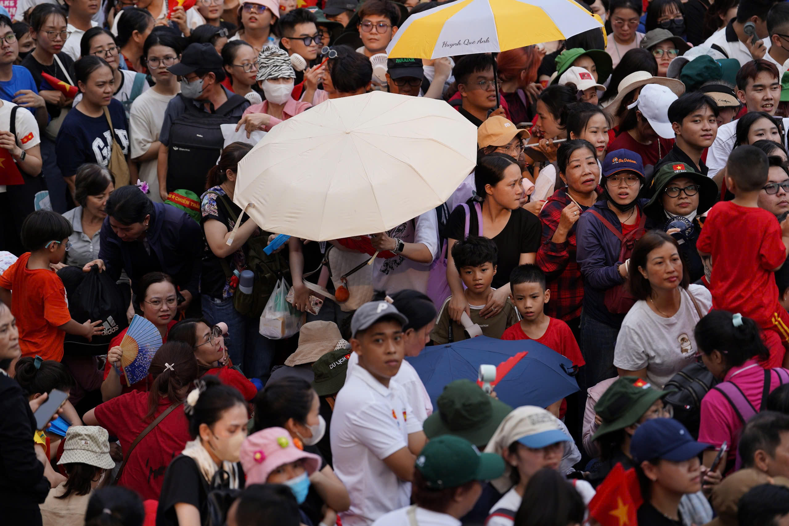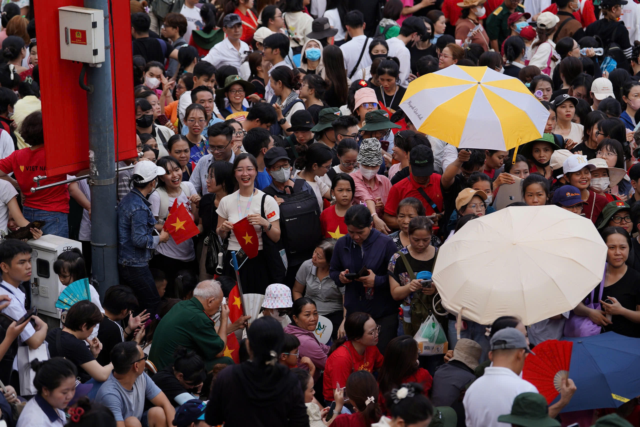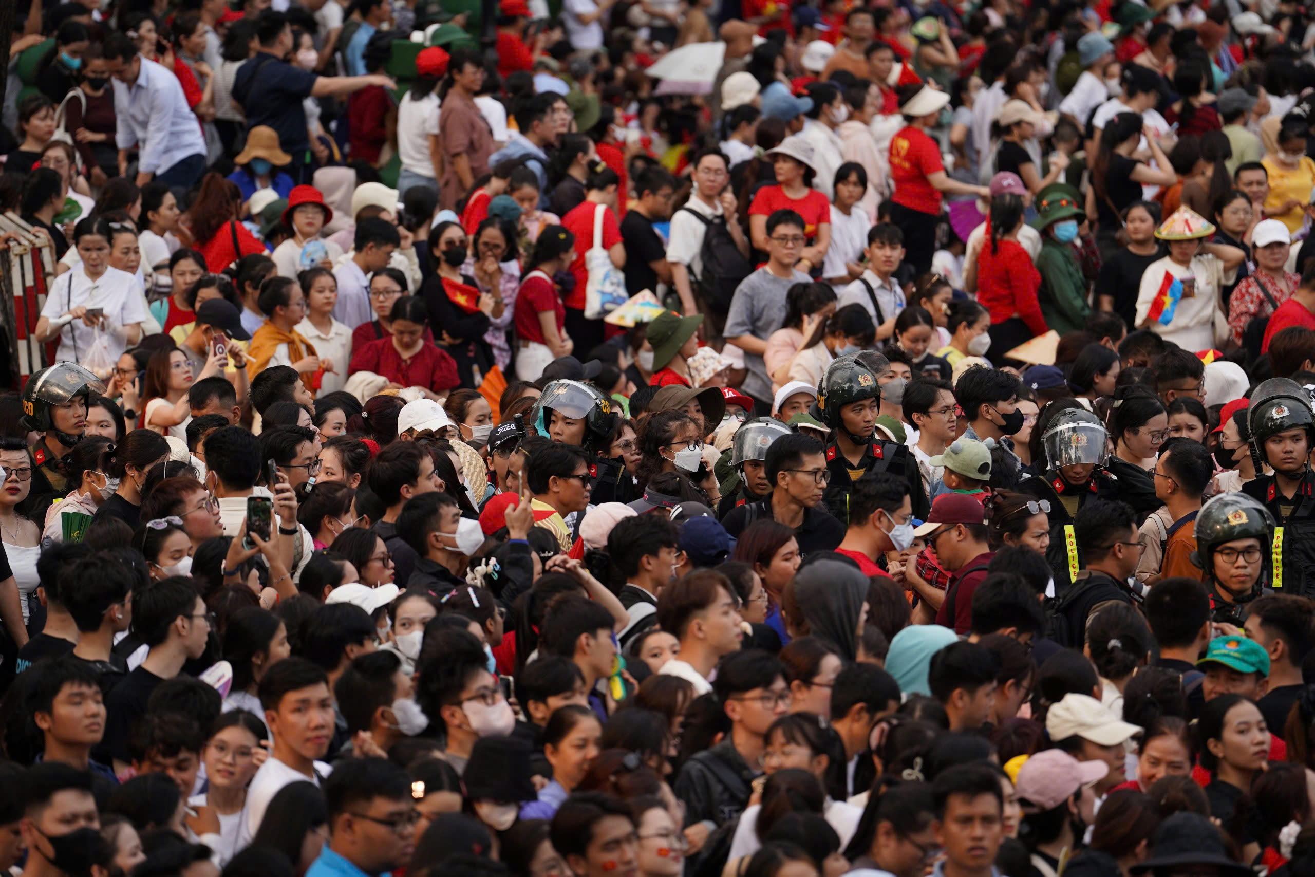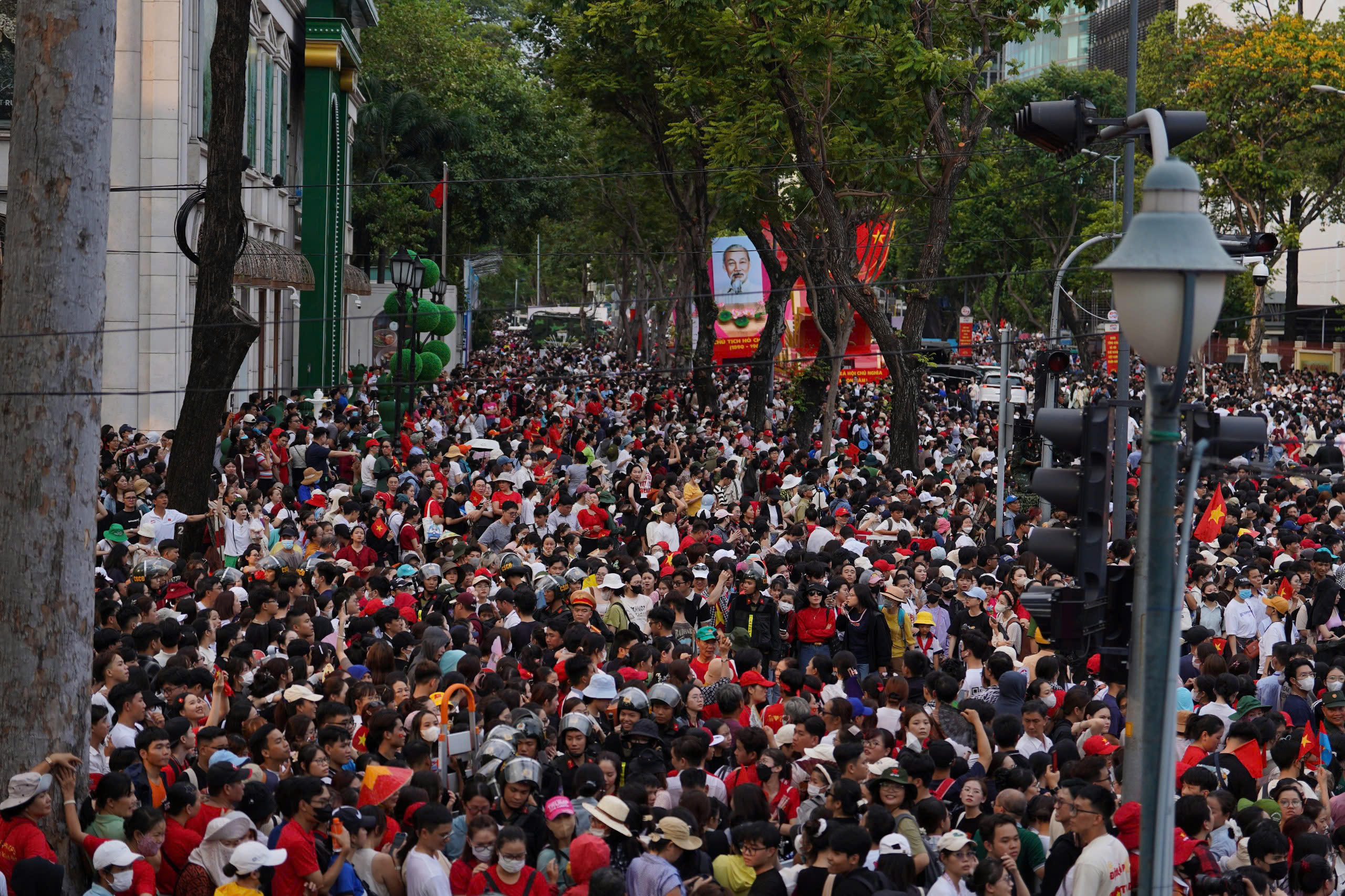 Biển người đổ về các tuyến đường trung tâm TP HCM để xem sơ duyệt diễu binh, diễu hành. |