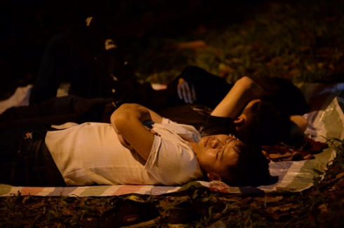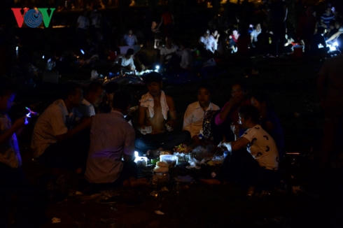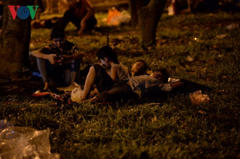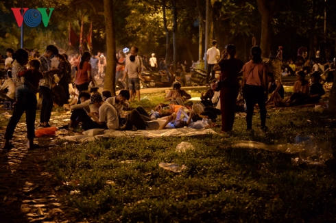 Đêm trước ngày diễn ra lễ dâng hương giỗ Tổ, hàng vạn du khách vẫn đổ về Đền Hùng, trải chiếu nằm khắp nơi.