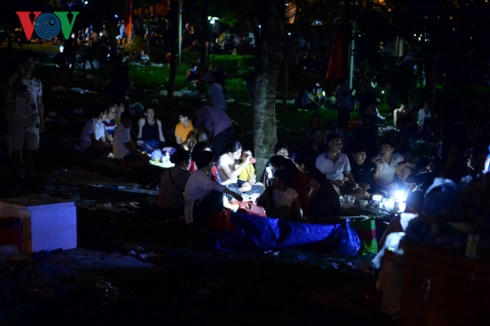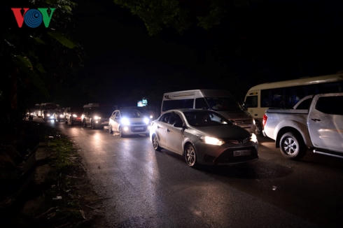 Theo ghi nhận của phóng viên, thời điểm lúc 22h30 ngày 13/4 (tức mùng 9/3 âm lịch), hàng vạn người vẫn đồ về khu vực Đền Hùng chờ đến sáng mai dâng hương giỗ Tổ.