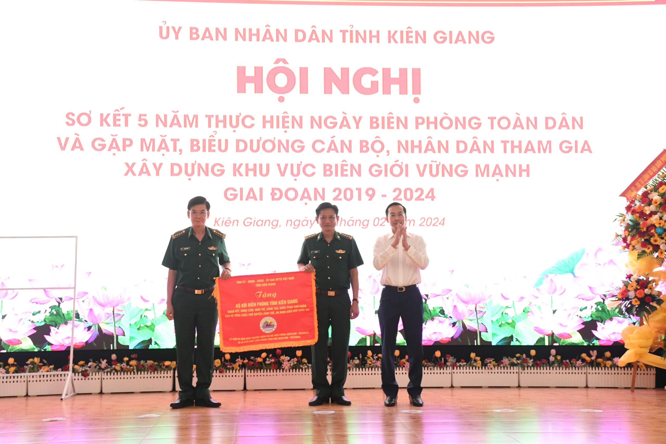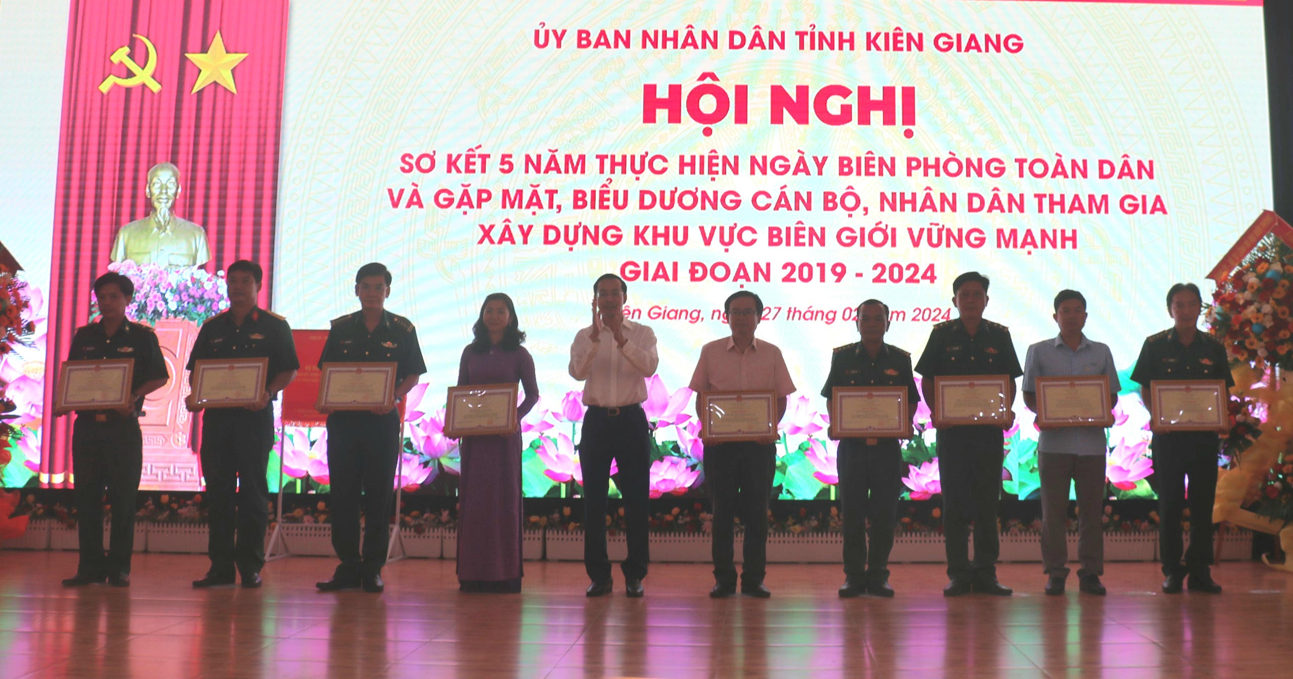 UBND tỉnh Kiên Giang trao bức trướng cho Bộ đội Biên phòng Kiên Giang có nội dung “Bộ đội Biên phòng tỉnh Kiên Giang đoàn kết, dũng cảm, mưu trí, sáng tạo, khắc phục khó khăn, bảo vệ vững chắc chủ quyền lãnh thổ, an ninh biên giới quốc gia”; trao tặng Bằng khen cho 19 tập thể và 22 cá nhân có thành tích xuất sắc trong thực hiện Ngày Biên phòng toàn dân giai đoạn 2019 - 2024.