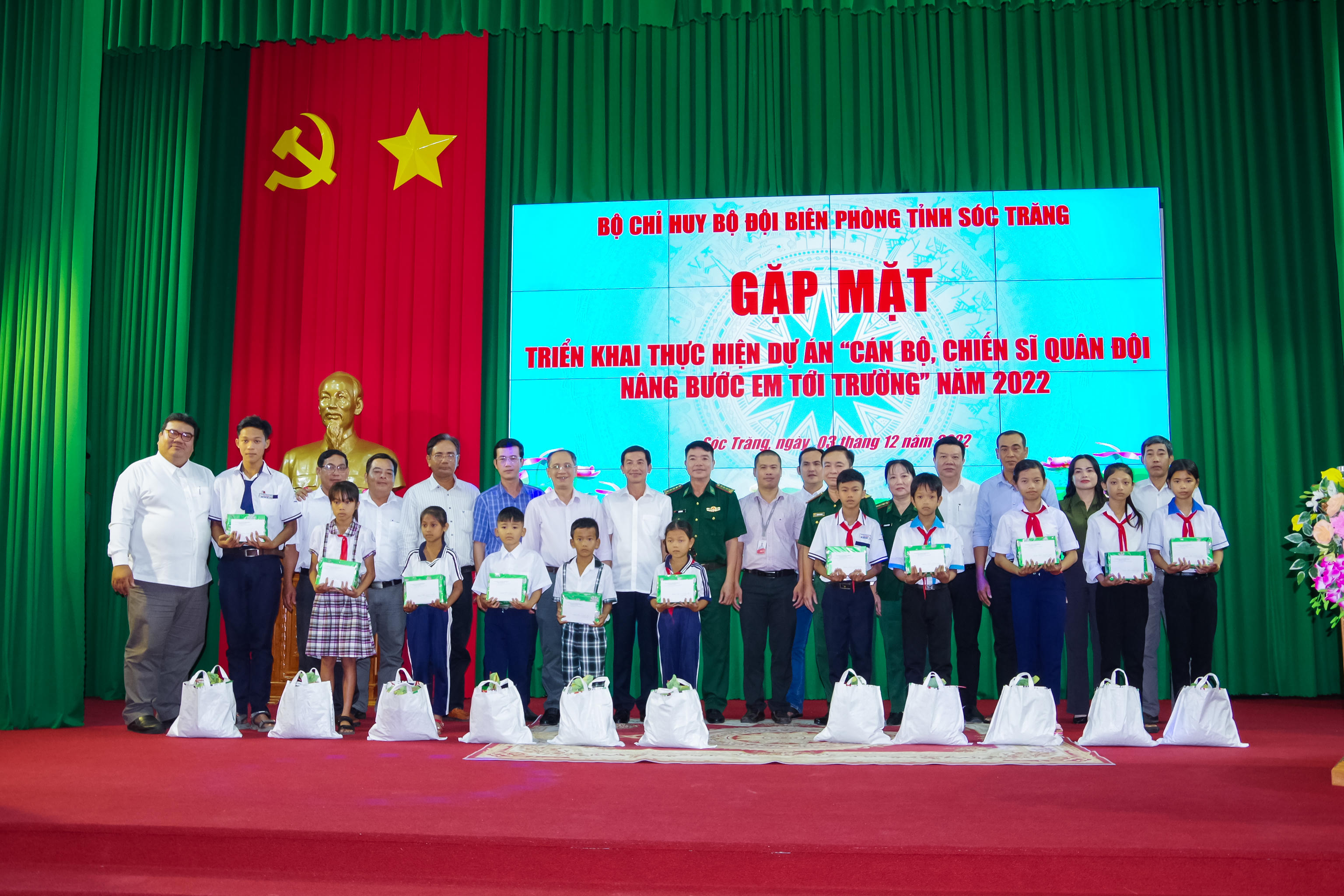 Với phương châm “Trao con chữ, truyền hi vọng”, năm 2022, thực hiện Kế hoạch của Bộ Tư lệnh BĐBP về thực hiện Dự án “Cán bộ, chiến sĩ Quân đội nâng bước em tới trường” giai đoạn 2021 2030, BĐBP tỉnh Sóc Trăng đã chỉ đạo các đồn Biên phòng phối hợp với địa phương rà soát các em học sinh có hoàn cảnh khó khăn trên địa bàn khu vực biên giới biển để đề xuất cấp trên hỗ trợ. Theo đó, các đồn Biên phòng đã nhận hỗ trợ 11 trường hợp, đây là những em học sinh người dân tộc Khmer có hoàn cảnh gia đình đặc biệt khó khăn, mồ côi cha, mẹ…