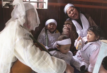Như có linh tính về chuyện chẳng lành, lập tức người thân các thuyền viên bắt xe vào Hà Tĩnh. Họ như mất hết sức sống khi nhận ra thi thể hai người là Vũ Văn Biên và Bùi Văn Hoài trên tàu cá NA 93240 TS. “Anh ơi, dậy với các con đi anh ơi, anh nói đi vài chuyến nữa có tiền sắm Tết rứa mà giờ …”, chị Lý khóc nghẹn, bên cạnh là ba đứa con thơ, đứa đầu lên 5, cháu nhỏ nhất vừa tròn 1 tuổi, thấy mẹ khóc chúng cũng chỉ biết khóc theo. Dường như chúng chưa thấu hiểu hết nỗi đau, nhưng trong ánh mắt chúng vẫn hướng về biển chờ tin bố.