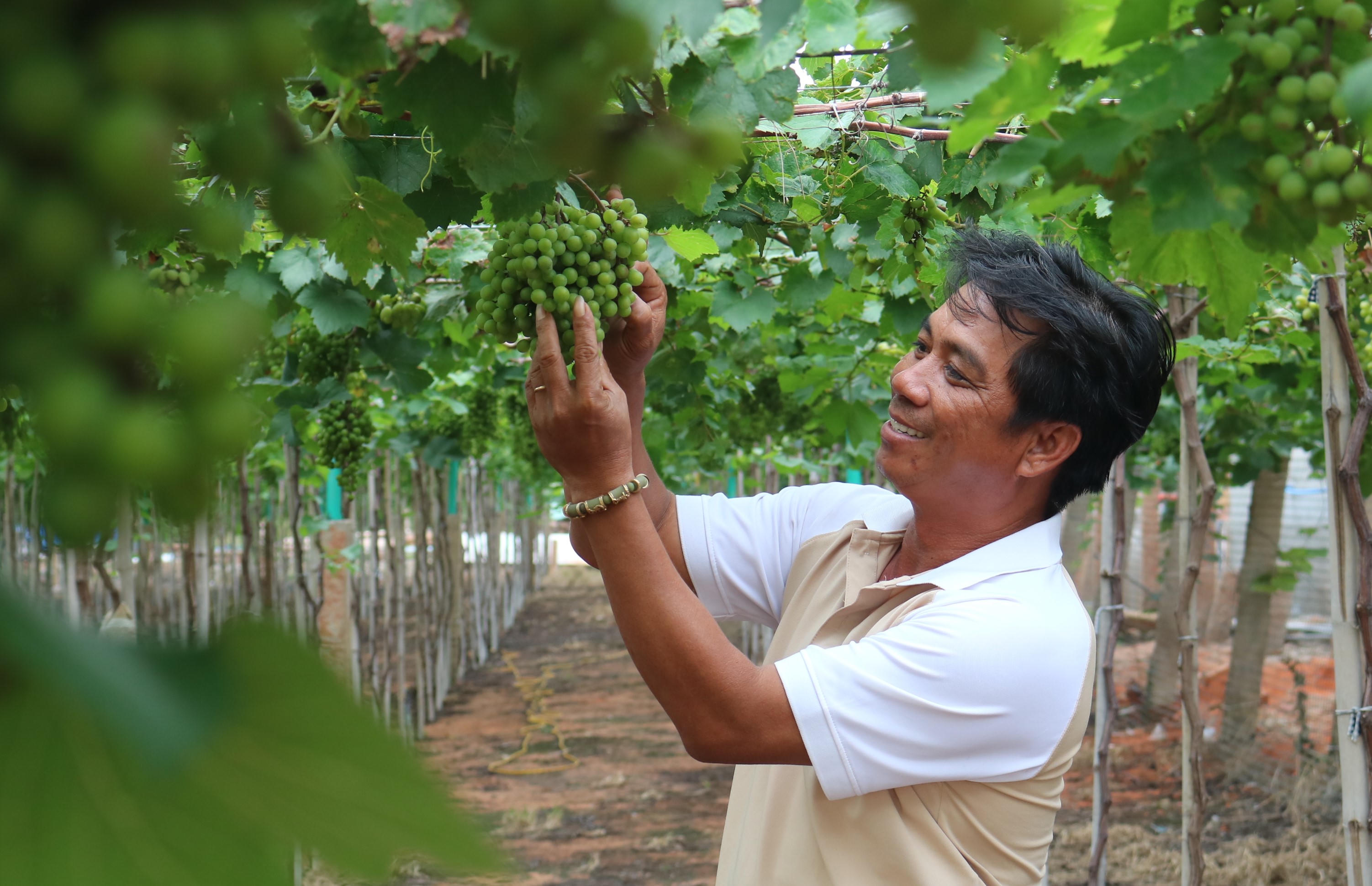 Sau thời gian vừa học hỏi, vừa tìm hiểu, ông Quang đã tự chăm sóc được cây nho, nhân giống từ một vườn nay đã lên 4 vườn với nhiều loại nho ngoại. Ngoài thu hoạch nho trái, mỗi ngày vườn còn thu hút hàng trăm lượt khách đến tham quan, thưởng thức nho tươi. “Tôi sẵn sàng chia sẻ giống cây, giúp bà con có thêm công việc, thu nhập; ngoài mong chờ vào cây thanh long”, ông Quang nói.