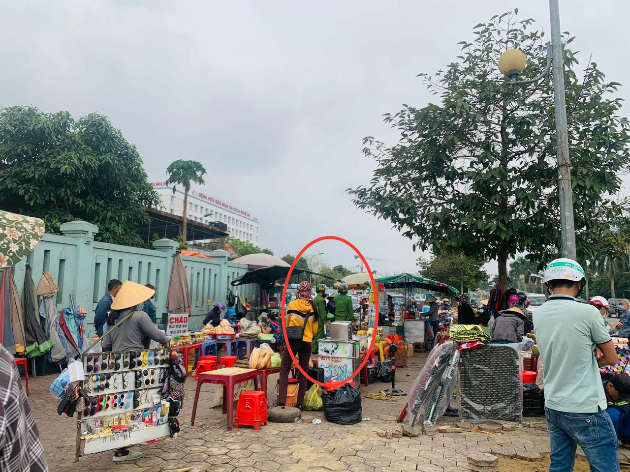 Bệnh viện HNĐK Nghệ An là bệnh viện tuyến cuối của tỉnh, mỗi ngày có hàng trăm ngàn lượt bệnh nhân đến khám và điều trị. Vỉa hè nơi đây vẫn luôn là một địa điểm tấp nập người bán, ồn ào, xả rác bừa bãi.