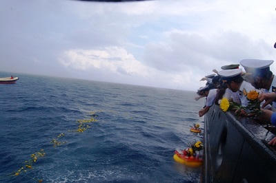 Hôm nay, đứng nơi biển trời lạnh vắng, cán bộ chiến sĩ Vùng 2 Hải quân xin kính cẩn nghiêng mình viếng hương hồn các anh. Tràng hoa trước biển hôm nay cuộn gói trong đó bao ân tình, là nghĩa cử tri ân đối với các liệt sĩ. Biển xanh mãi nhắc tên anh. Xin cầu mong linh hồn các anh bình yên vĩnh hằng trong lòng biển”