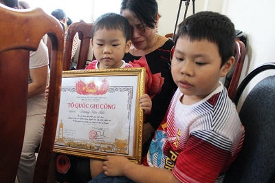 (PLO) - Ôm tấm bằng Tổ quốc ghi công vào lòng sau gần một năm chồng hi sinh, nước mắt người vợ liệt sĩ cứ tuôn rơi trên má. Dẫu tấm bằng Tổ quốc ghi công không khỏa lấp được nỗi đau nhưng chị kiêu hãnh vì chồng chị đã anh dũng hi sinh vì Tổ quốc. Nghẹn ngào, chị nói với chúng tôi mà như nói với chồng mình: “Ba mẹ con em sẽ sống xứng đáng với anh. Đồng đội luôn ở bên anh, biển xanh mãi nhắc tên anh. Bắc ơi!”.