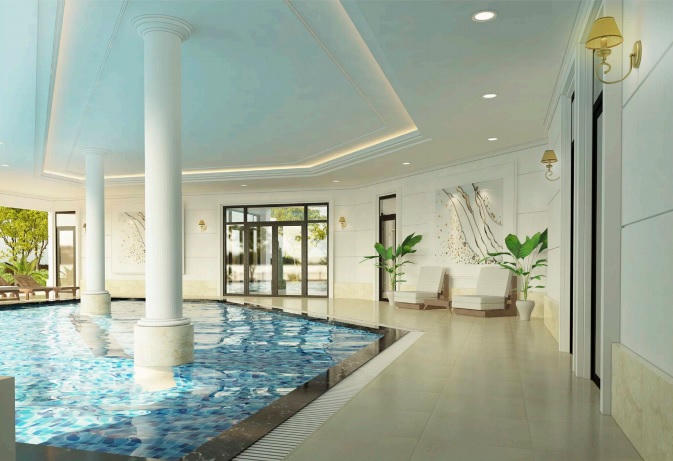 | Tiện ích Clubhouse với bể bơi trong nhà, bể bơi ngoài trời, thư viện… góp phần mang đến cho cư dân những phút giây thư giãn thoải mái - (Hình ảnh phối cảnh minh họa) |