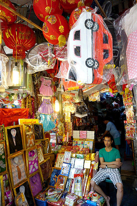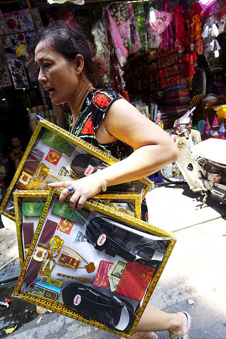 Tại phố Hàng Mã (Hà Nội), nơi bán nhiều đồ lễ cúng rằm nhất thành phố, bên cạnh quần áo, giày dép, tiền vàng gửi cho "người cõi âm" thì không thể thiếu các loại phương tiện, như ôtô, xe máy, xe đạp. Các mặt hàng chiếm nhiều diện tích này thường được treo cao.
