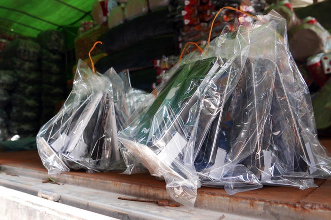 Để cung cấp khối lượng vàng mã khổng lồ cho khắp cả nước, hàng nghìn hộ dân ở Đông Hồ và các thôn khác trong xã Song Hồ (Thuận Thành) đã tham gia làm vàng mã. Trong ảnh, iPhone, iPad chuẩn bị được xếp lên thùng xe tải chở đi Nghệ An.