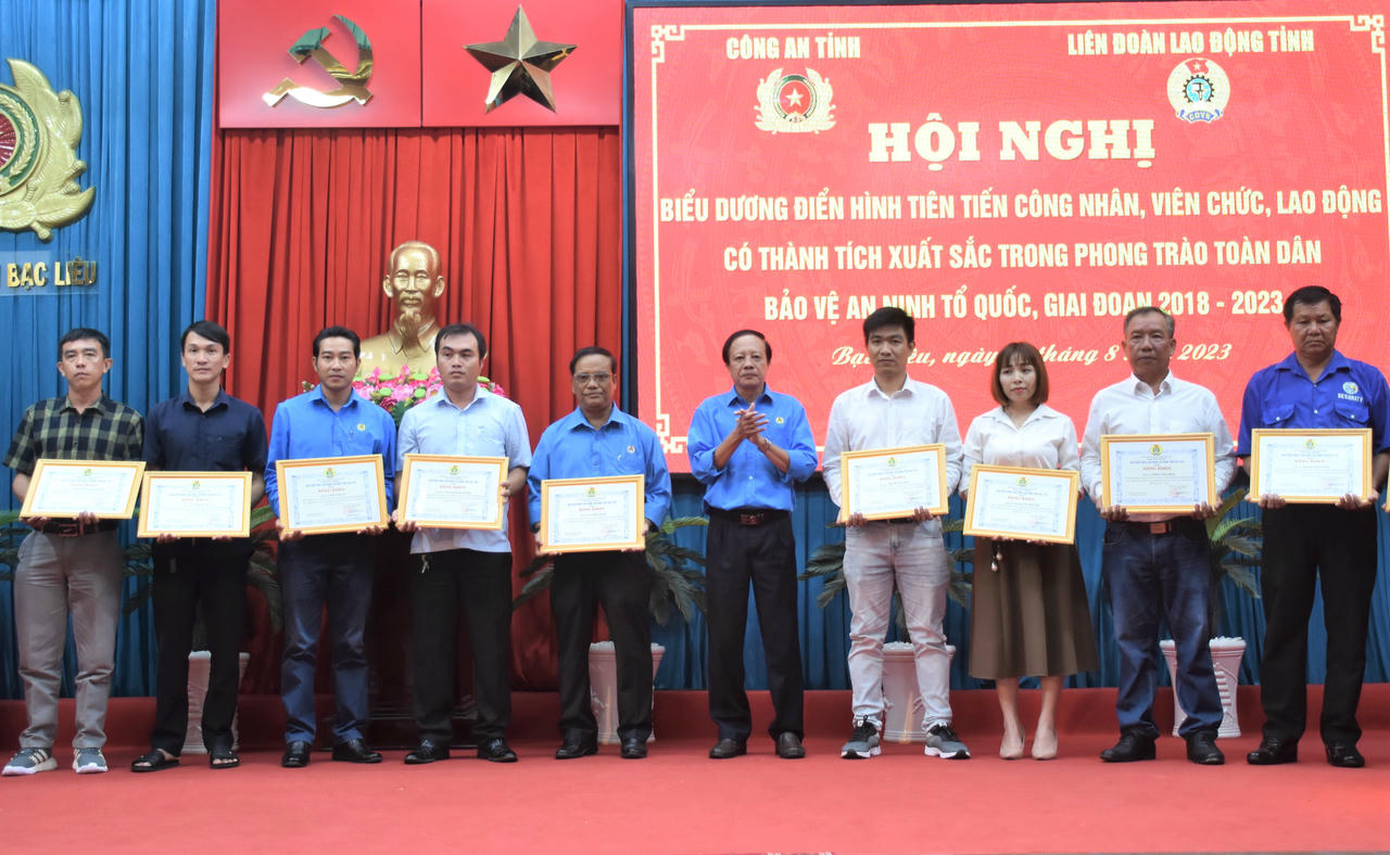 Nhân dịp này, Chủ tịch UBND tỉnh Bạc Liêu, Ban Chấp hành Liên đoàn Lao động tỉnh và Giám đốc Công an tỉnh quyết định tặng Bằng khen, Giấy khen cho 75 công nhân, viên chức, người lao động có thành tích xuất sắc tiêu biểu trong thực hiện phong trào toàn dân bảo vệ an ninh Tổ quốc, giai đoạn 2018 – 2023.