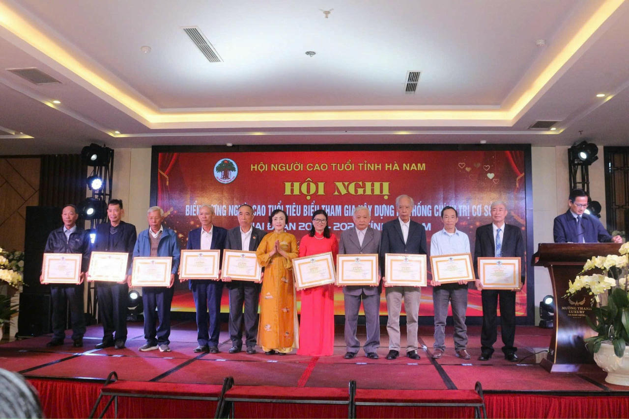 Tại hội nghị, Hội NCT đã trao Bằng khen của Chủ tịch UBND tỉnh Hà Nam cho 11 cá nhân có thành tích xuất sắc trong phong trào người cao tuổi tham gia xây dựng hệ thống chính trị cơ sở giai đoạn 2019-2024 ; tặng giấy khen cho 38 cá nhân.