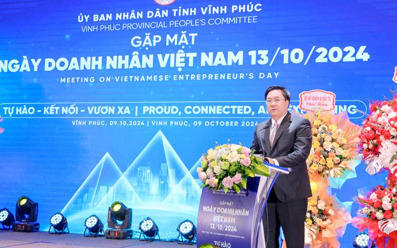Tại buổi lễ, Chủ tịch UBND tỉnh Vĩnh Phúc Trần Duy Đông biểu dương, đánh giá cao những đóng góp của cộng đồng doanh nghiệp, đội ngũ doanh nhân đối với sự phát triển kinh tế - xã hội của tỉnh và khẳng định tỉnh luôn tạo điều kiện thuận lợi nhất để doanh nghiệp phát triển.
