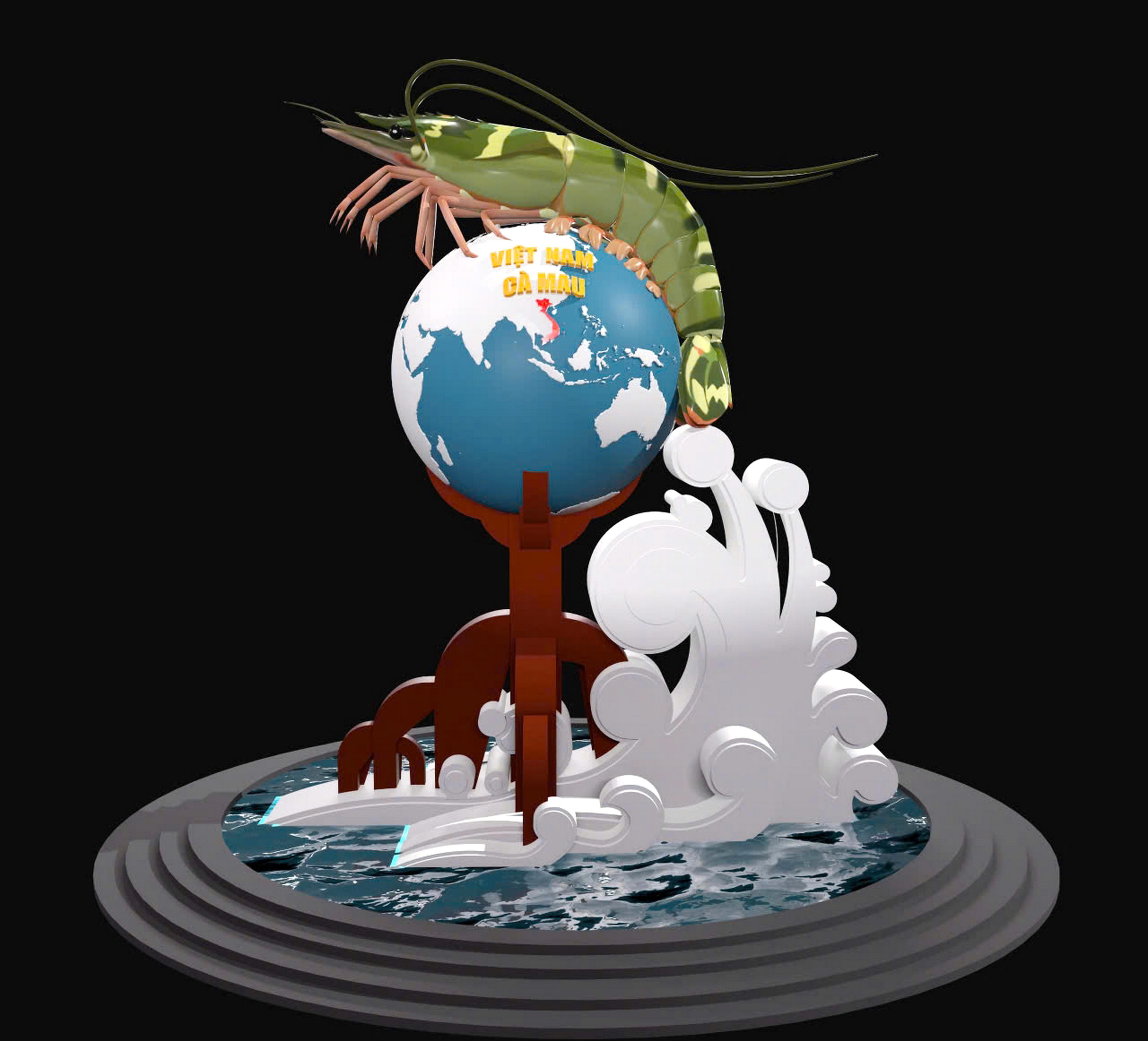 Biểu tượng con tôm Cà Mau với thông điệp tôn vinh đối với những người nuôi tôm, dự kiến với kinh phí 21,8 tỷ đồng (Ảnh: Minh Tấn). |