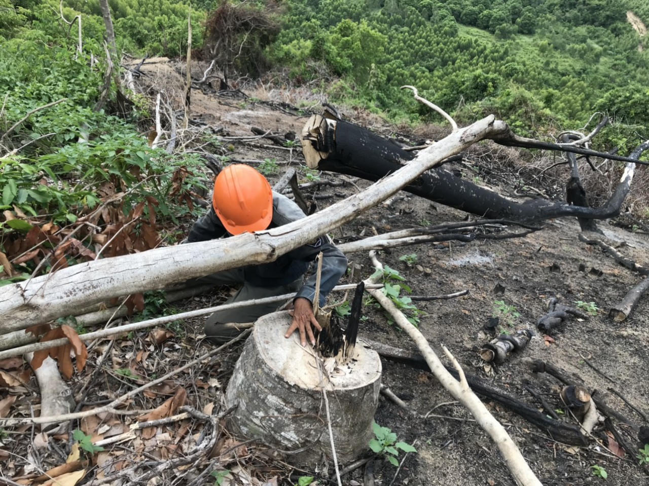 Tổng diện tích rừng bị thiệt hại là 1.174m2, tập trung tại 3 vị trí khác nhau. Tổng số gốc cây gỗ bị chặt hạ tại hiện trường là 18 gốc. Trong đó, có một gốc cây cà te tái sinh 2 thân, đường kính 20cm, thuộc nhóm IIA; còn lại chủ yếu là cây kơ-nia (cầy) nhóm VI; cây giẻ thuộc nhóm V và một số cây gỗ tạp cứng. Tất cả các gốc cây gỗ được kiểm tra có đường kính từ 10cm - 45cm.
