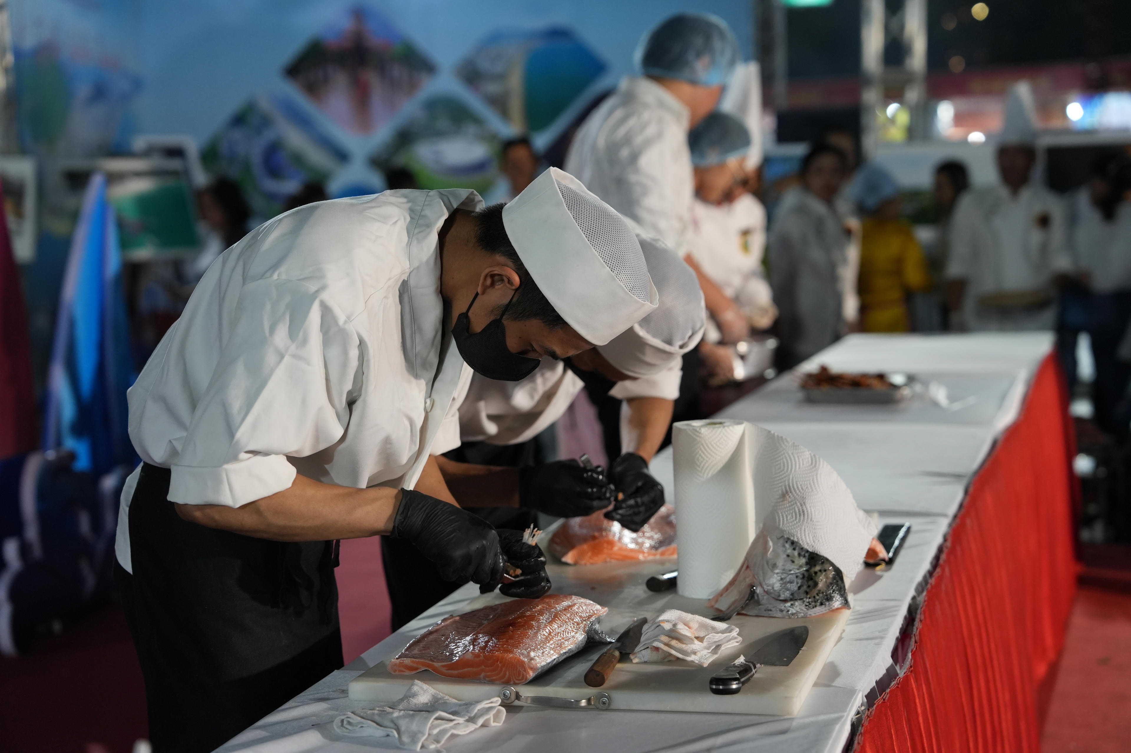 Các đầu bếp chế biến món ăn tại không gian quảng diễn ẩm thực |