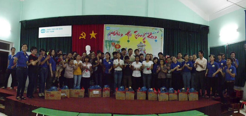 Các nhóm thiện nguyện trao quà trung thu tại làng Trẻ em SOS. Ảnh: Cổng TTĐT Bình Định |