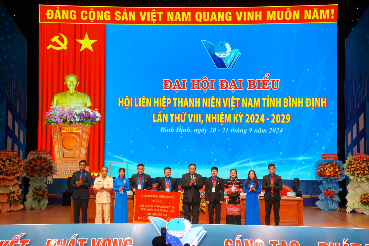 Dịp này, Ban Chấp hành Đảng bộ tỉnh cũng gửi tặng tới Đại hội bức trướng với dòng chữ: “Thanh niên Bình Định: Đoàn Kết - Khát Vọng - Sáng Tạo - Phát Triển.
