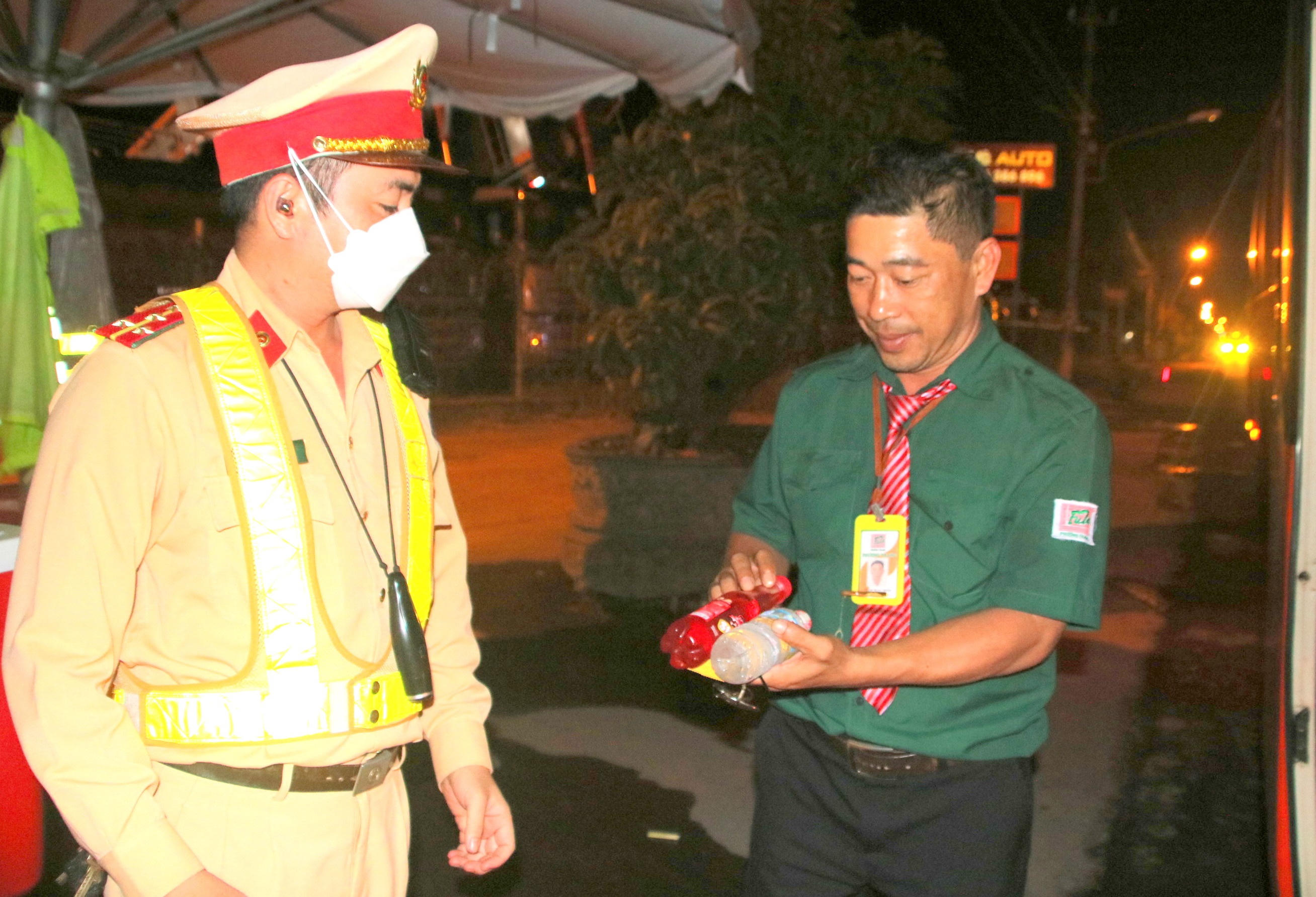 Hơn 22h ngày 21/3, tài xế Nguyễn Văn Dũng (33 tuổi, chạy xe khách tuyến Bình Dương - Thanh Hóa) tỏ ra ngạc nhiên khi đến Trạm CSGT Tuy Phước được lực lượng CSGT ra hiệu lệnh dừng xe, nhắc nhở lái xe an toàn, rồi tặng khăn lạnh, nước giải khát.