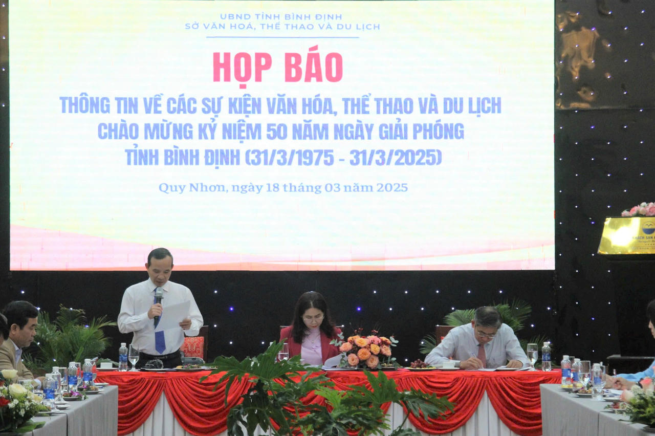 (PLVN) - Chiều ngày 18/3, tại TP Quy Nhơn đã diễn ra buổi họp báo thông tin về các hoạt động văn hóa, thể thao và du lịch chào mừng Kỷ niệm 50 năm Ngày giải phóng tỉnh Bình Định (31/3/1975 - 31/3/2025).
