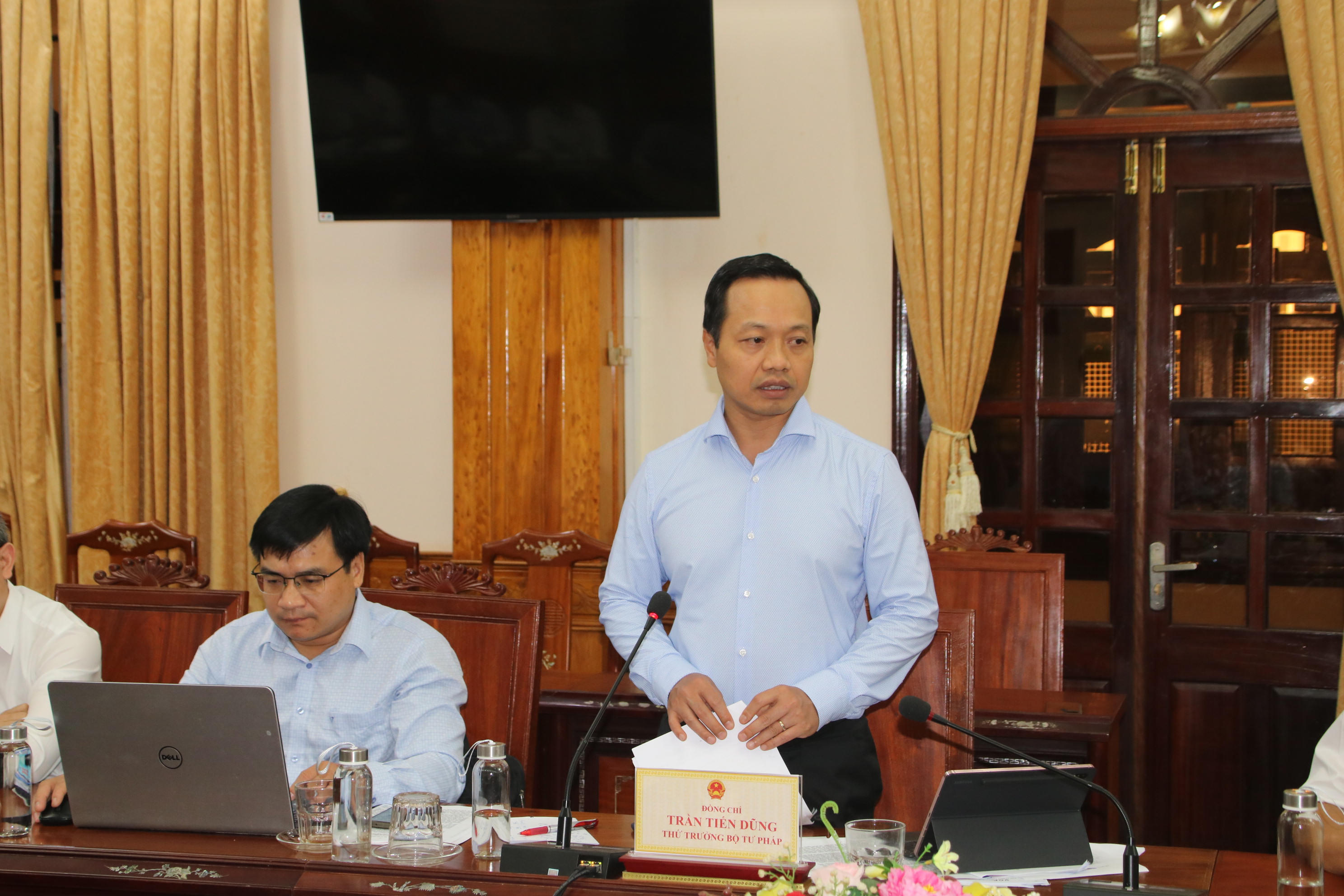 Thứ trưởng đánh giá công tác tư pháp và thi hành án dân sự của tỉnh đã được thực hiện tốt, 2 năm gần nhất được xếp loại hoàn thành xuất sắc nhiệm vụ. Thay mặt Ban cán sự Đảng, lãnh đạo Bộ Tư pháp, Thứ trưởng Trần Tiến Dũng cảm ơn sự quan tâm của các đồng chí lãnh đạo Tỉnh ủy, HĐND, UBND tỉnh tới công tác tư pháp và thi hành án dân sự; sự phối hợp trách nhiệm, kịp thời, hiệu quả của các sở, ban, ngành trong tỉnh đối với công tác tư pháp và thi hành án dân sự.