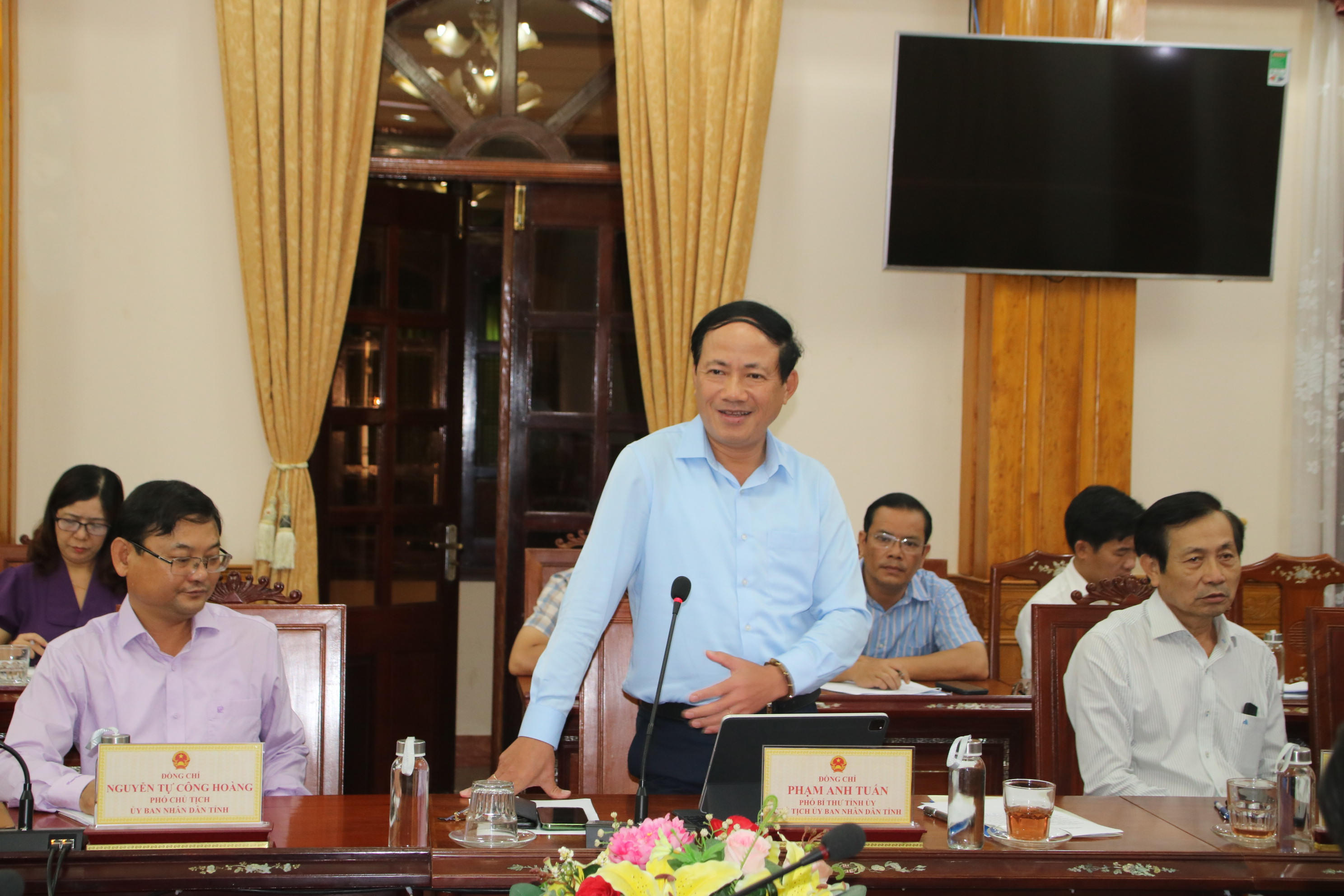 Tiếp và làm việc với Đoàn công tác có các ông Phạm Anh Tuấn - Chủ tịch UBND tỉnh, Đoàn Văn Phi - Phó Chủ tịch Thường trực HĐND tỉnh, Nguyễn Tự Công Hoàng - Phó Chủ tịch UBND tỉnh Bình Định cùng lãnh đạo các sở, ban, ngành của tỉnh này.