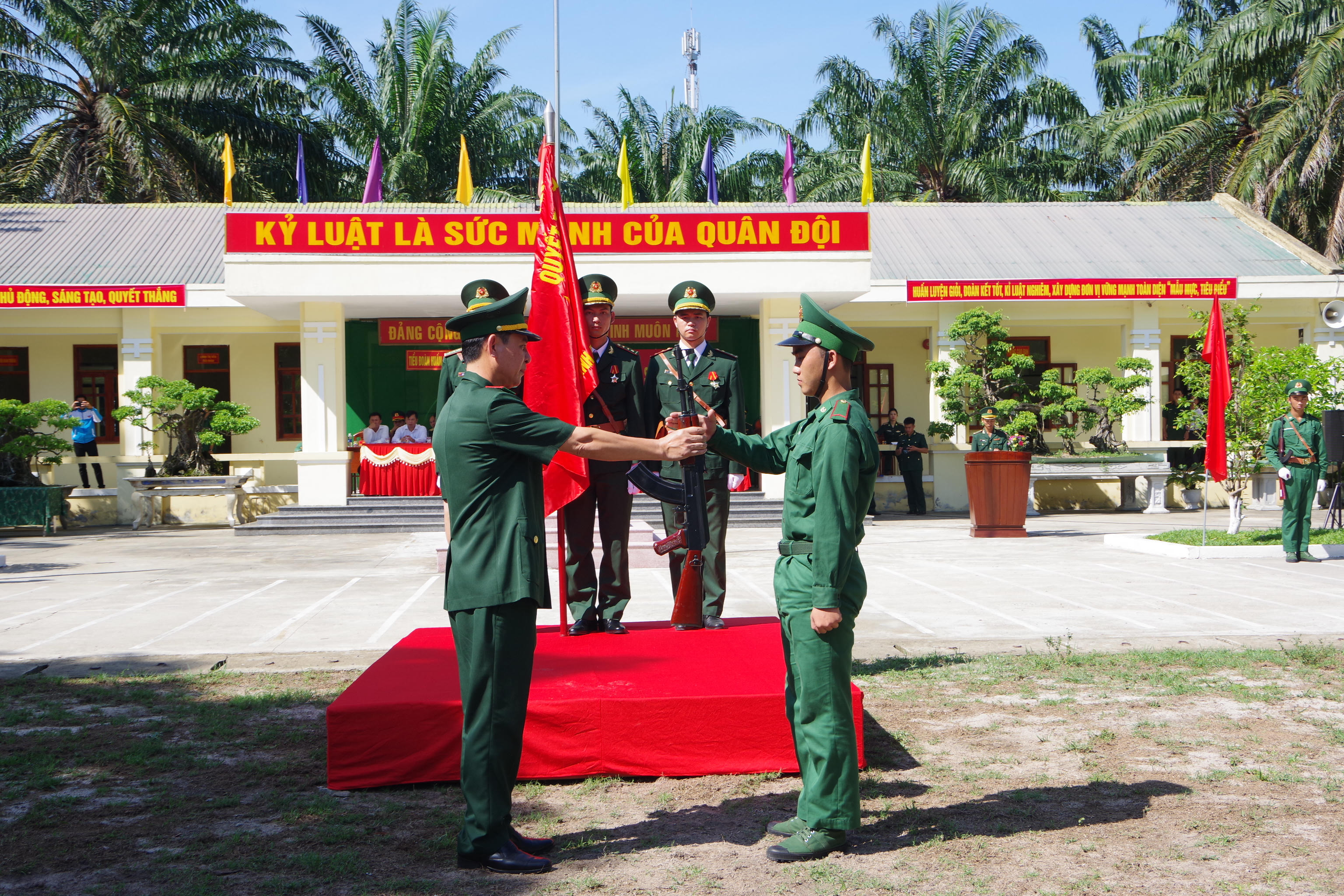 Đại diện Bộ Chỉ huy BĐBP tỉnh Bình Định trao vũ khí cho chiến sĩ mới |