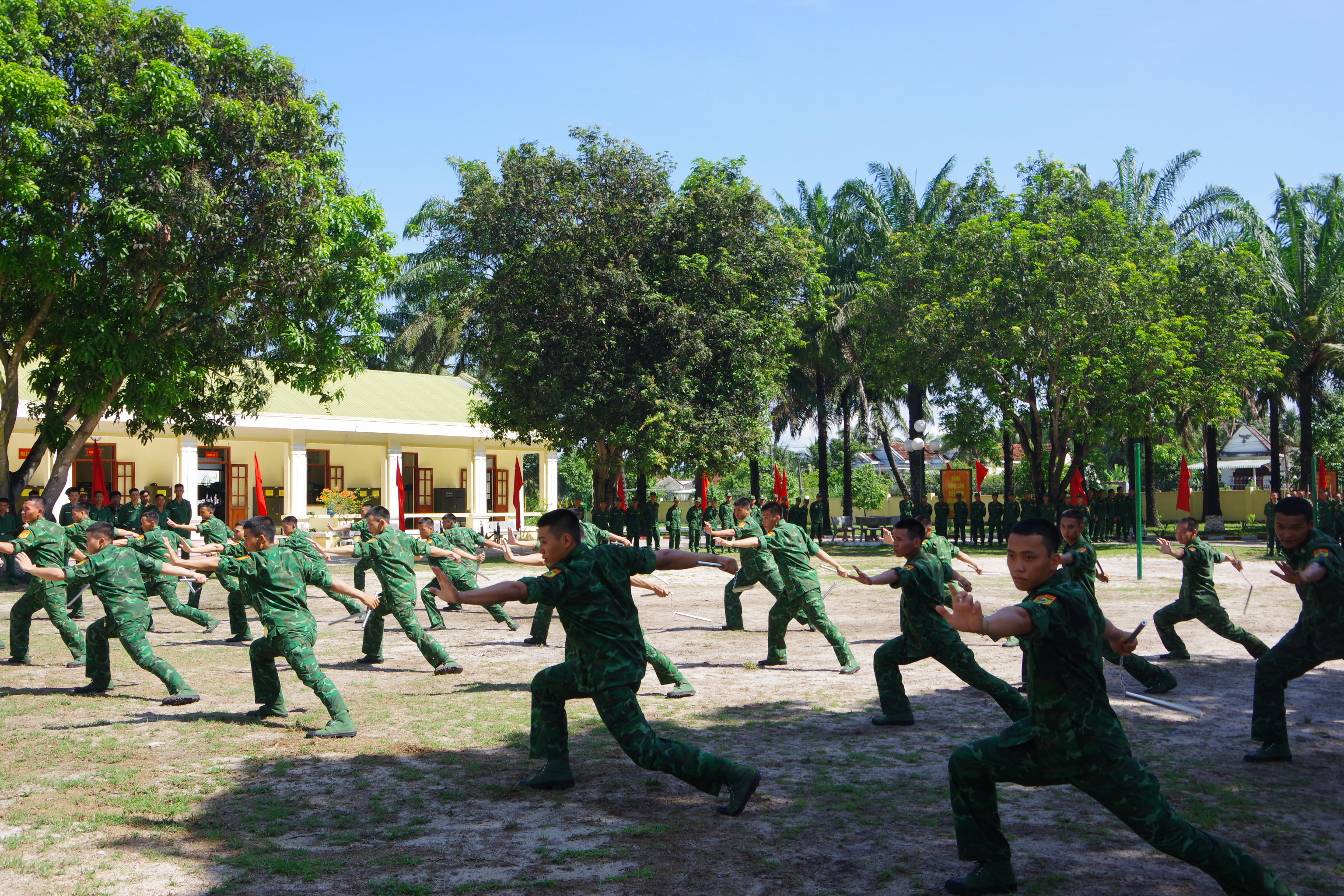 Chiến sĩ mới biểu diễn côn nhị khúc |
